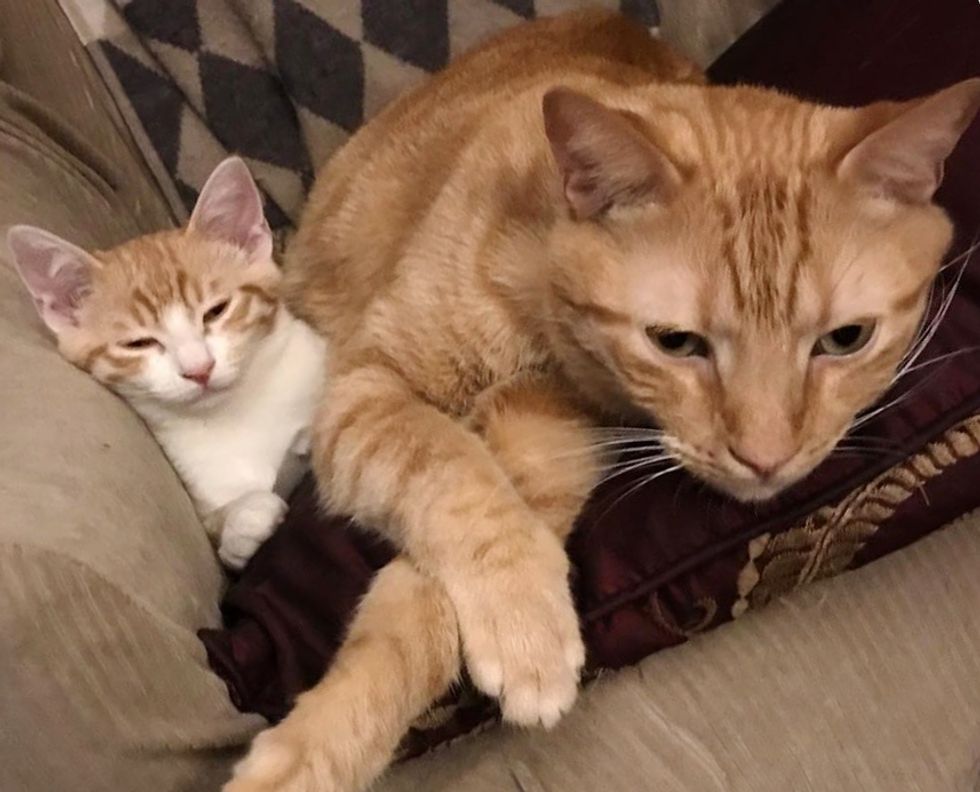 ▼Cru是一隻很友好的小貓,來到Justin家後很快跟這裡的貓貓狗狗成為了朋友。特別是橘貓Ollie,簡直把Cru當成自己的小孩來對待!