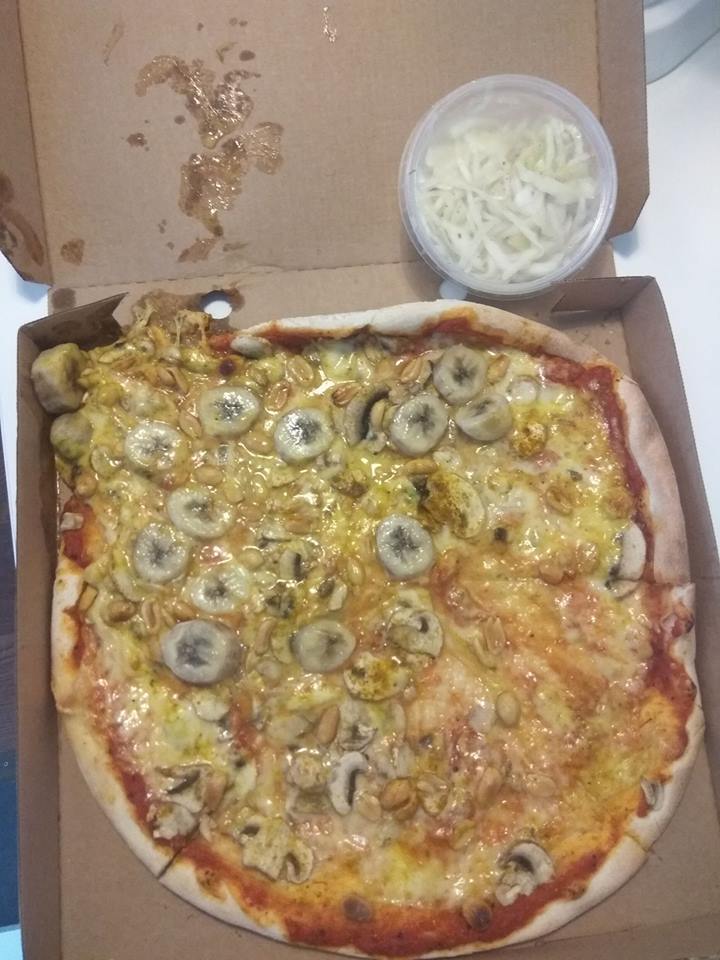▼除了奇異果披薩,這個世界上竟然還有叫做「Afrikana」的古怪披薩!香蕉、蘑菇、花生、咖哩粉…阿娘餵~這是什麼異星世界在吃的披薩啊?