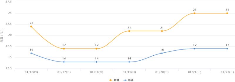 2020年01月16日台灣今天大多數地區天氣晴朗,但是明天開始就會有冷空氣南下,等級直逼大陸冷氣團!根據氣象專家表示,北台灣明天的溫度將驟降、愈晚愈冷!20日後又會有一小波東北季風南下,民眾必須做好保暖的動作。