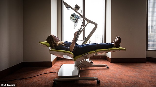 ▼研究顯示,久坐會引發很多健康問題,長時間不活動會導致新陳代謝降低、發胖等等。一直敲鍵盤、用滑鼠會導致肌肉緊張。Altwork推出的這款辦公桌能夠提供40多種不同的坐姿,不管你想坐著上班,躺著上班,還是站著上班都沒問題。