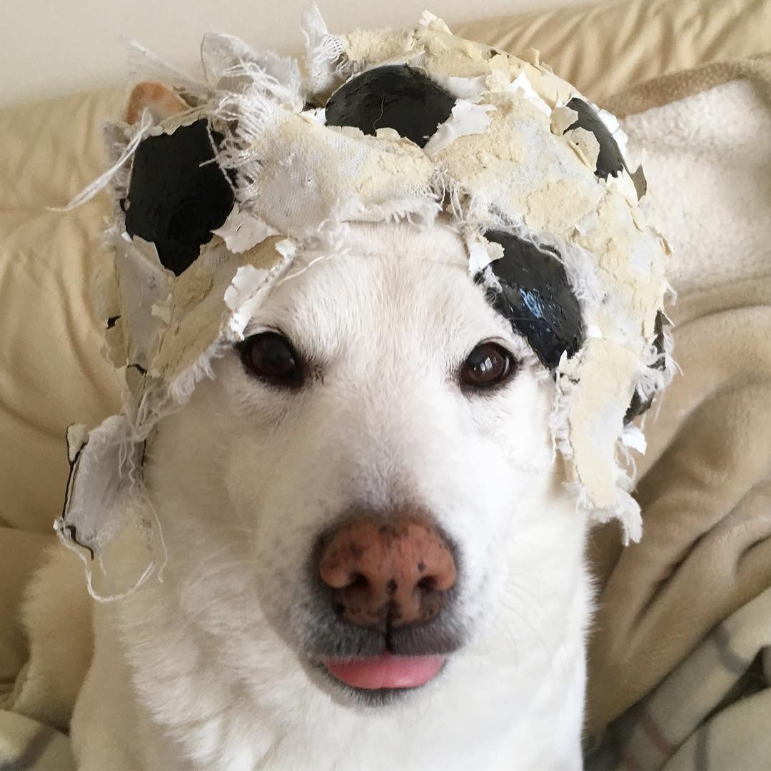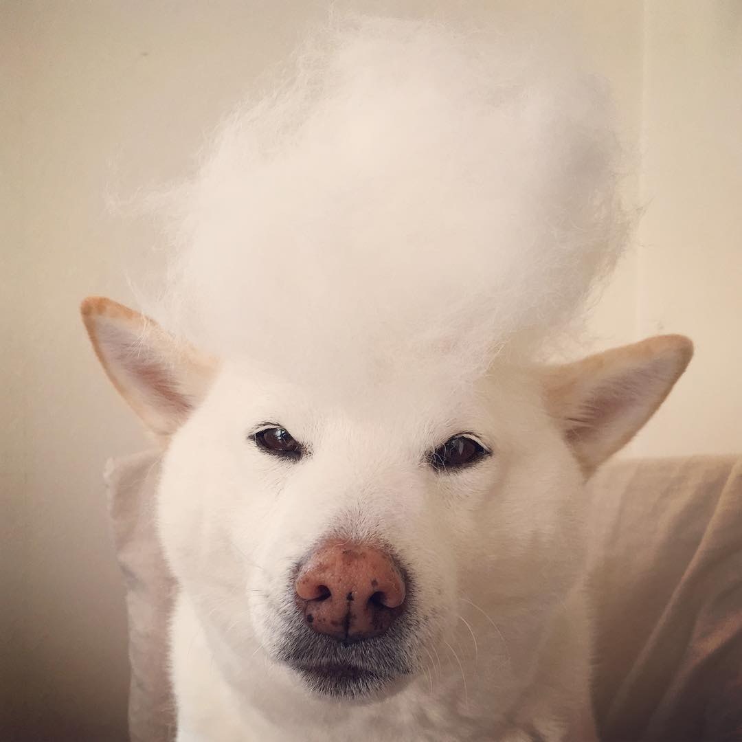▼之前主人為さな拍攝了一組戴白色假髮的照片。這假髮是主人收集さな掉下來的毛毛,然後用膠水黏合起來做成的。當時這曾掀起一股潮流,很多網友都學著用這樣的方法給家中的狗狗裝扮。