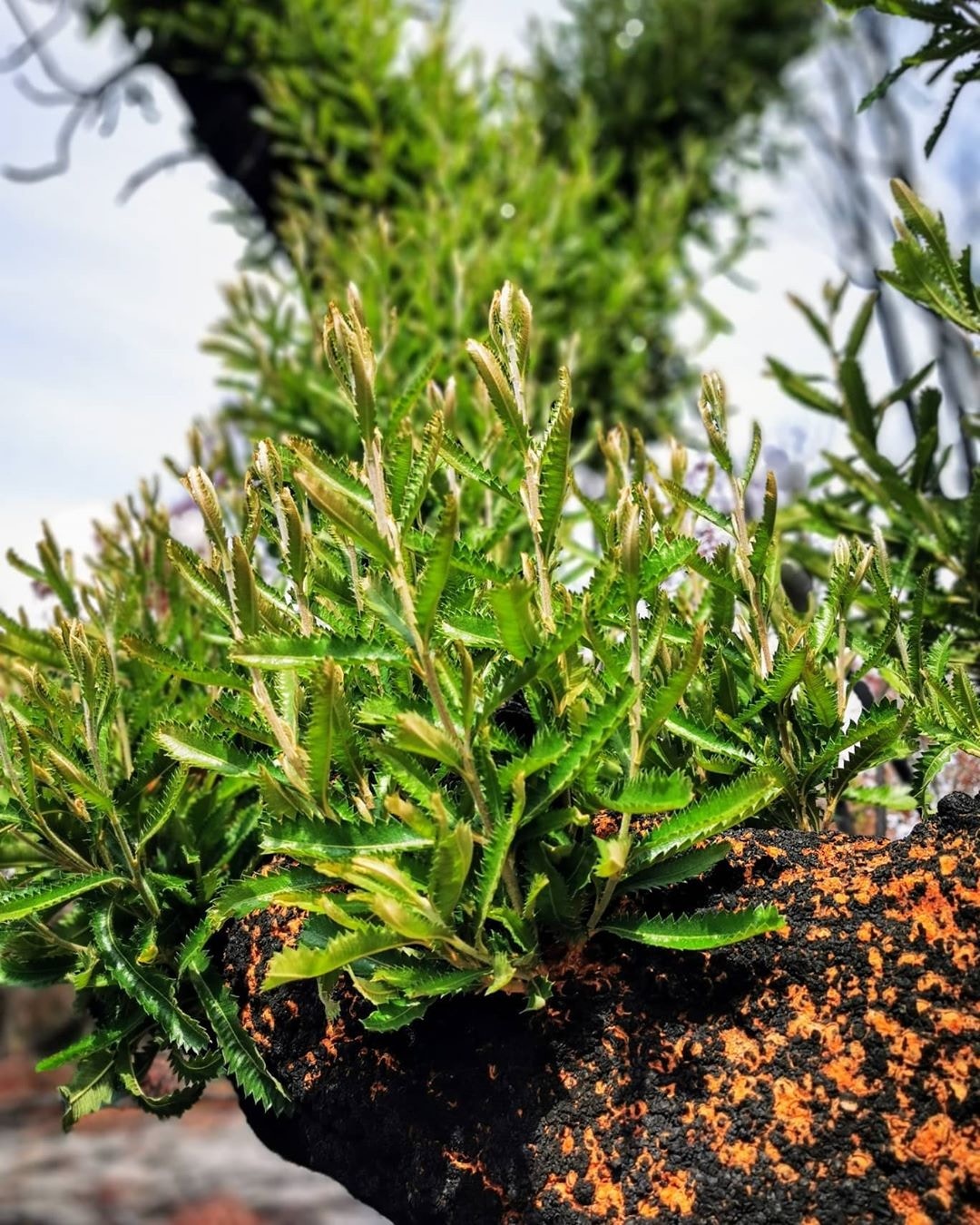 ▼雖然植物表面有燒過的痕跡,但一場大雨過後,這些枯枝上竟重新長出嫩芽,部分樹枝甚至長滿綠葉,看起來生機勃勃。