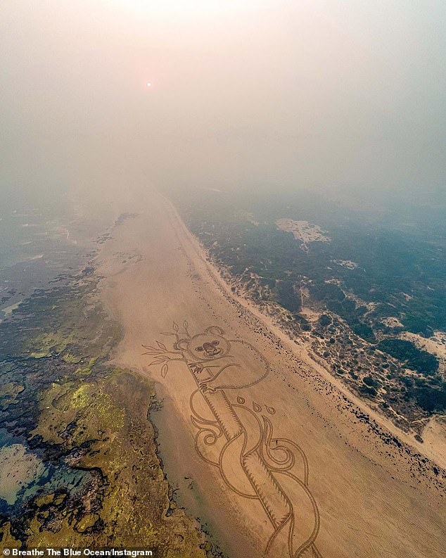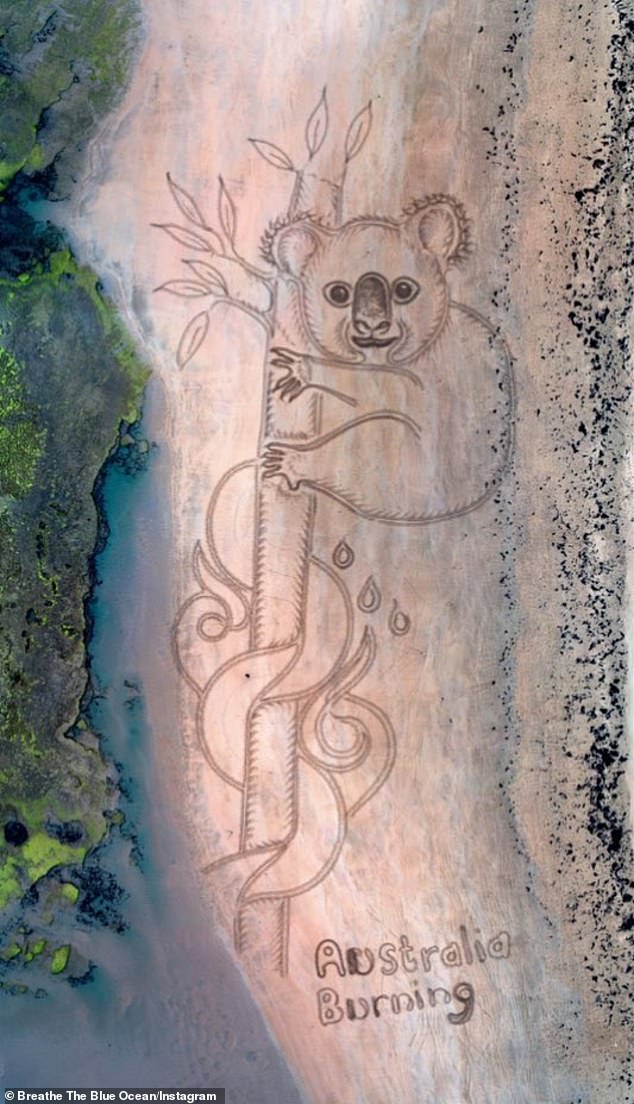 求關注澳洲山火!藝術家在沙灘畫出「巨大無尾熊」 近10億動物已消失