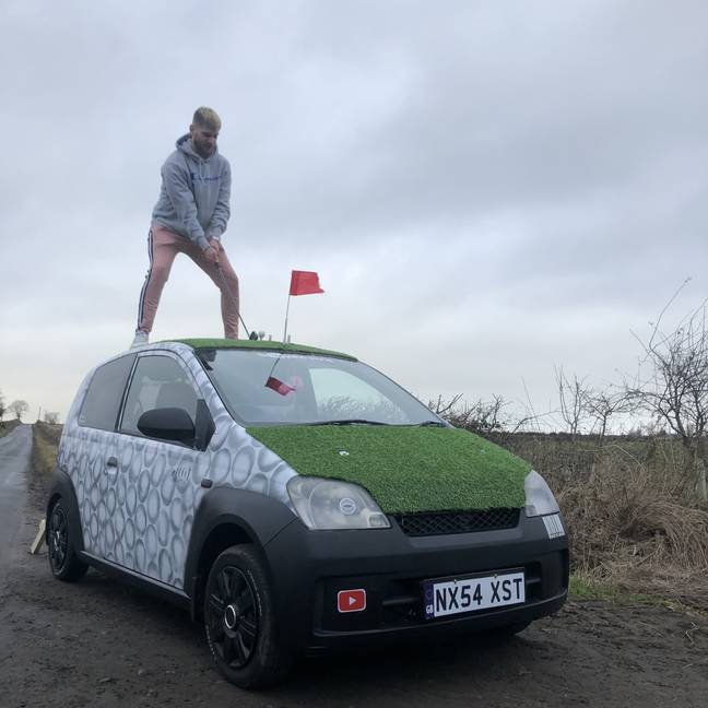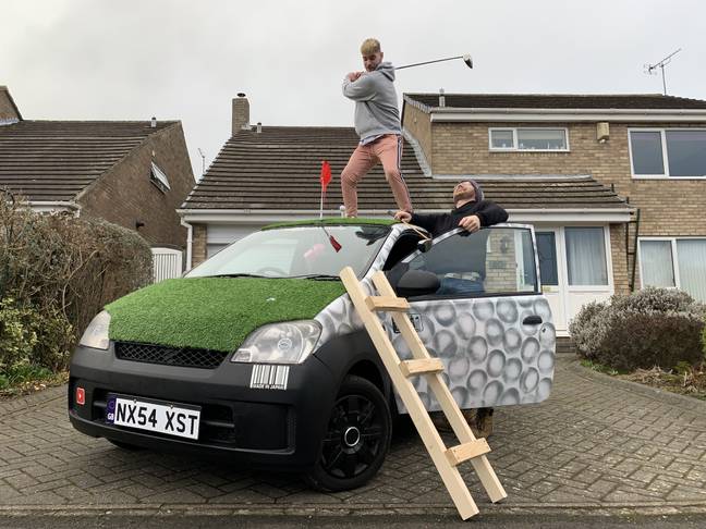 汽車不僅是代步工具,還能變成「移動小白球練習場」!27歲的John Imrie和31歲的Kurt在歐洲公路旅行期間想出了一個好主意。他們在車頂舖上人造草坪,並安裝發球台,隨時隨地都能揮桿玩球。