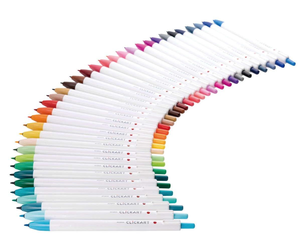▼4.斑馬牌按鈕式水筆:這可是書寫類別的第一名,36種顏色的筆任你挑選。這款筆最棒的一點是筆頭不會乾,它能吸收空氣中的水分保持濕度,按一下就能書寫。