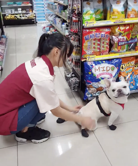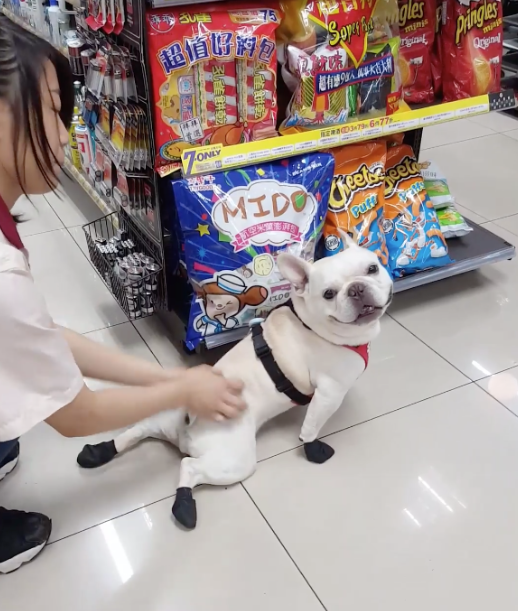 你按對了~法鬥日常最愛「讓店員按屁屁」 爽到微笑的表情有夠萌