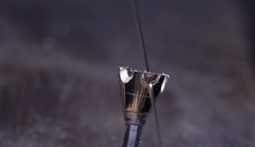 ▼使用工具修飾鑽托底部,這一部必須很小心,切割金屬時力氣大一點或小一點都不行。還要退火處理,讓尺寸更穩定,防止變形;