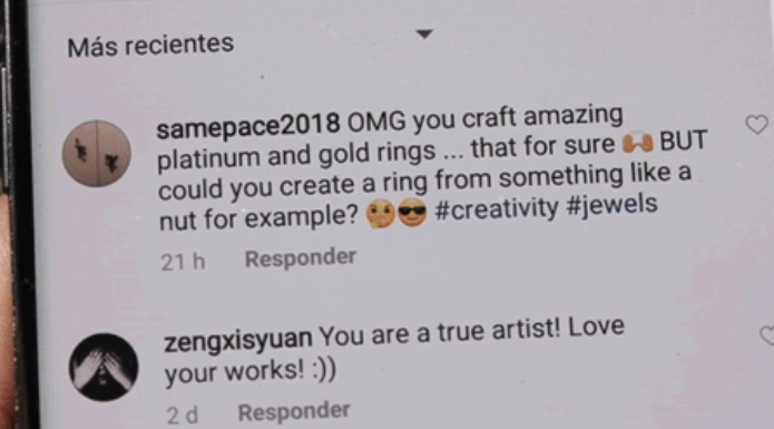 ▼Pablo為什麼突然想用螺母做戒指呢?原來這是一位粉絲的提議,對方表示很喜歡他製作的鉑金戒指,不知道能不能用螺母做一枚。他成功做好,還鼓勵對方說:「如果你能想得到,那就能做得到!」