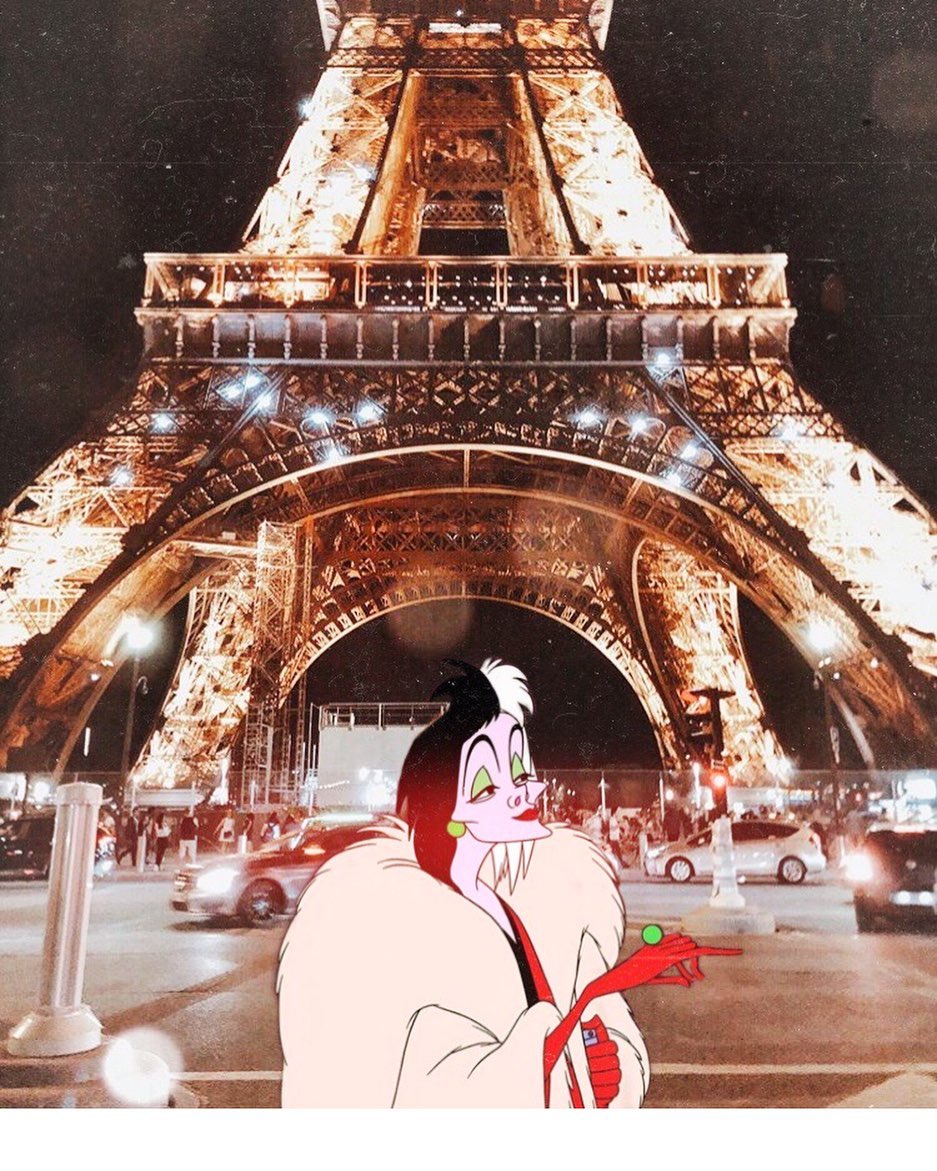 如果迪士尼公主活在我們的現實… 15張「幻想合成照」庫伊拉在巴黎鐵塔太無違和