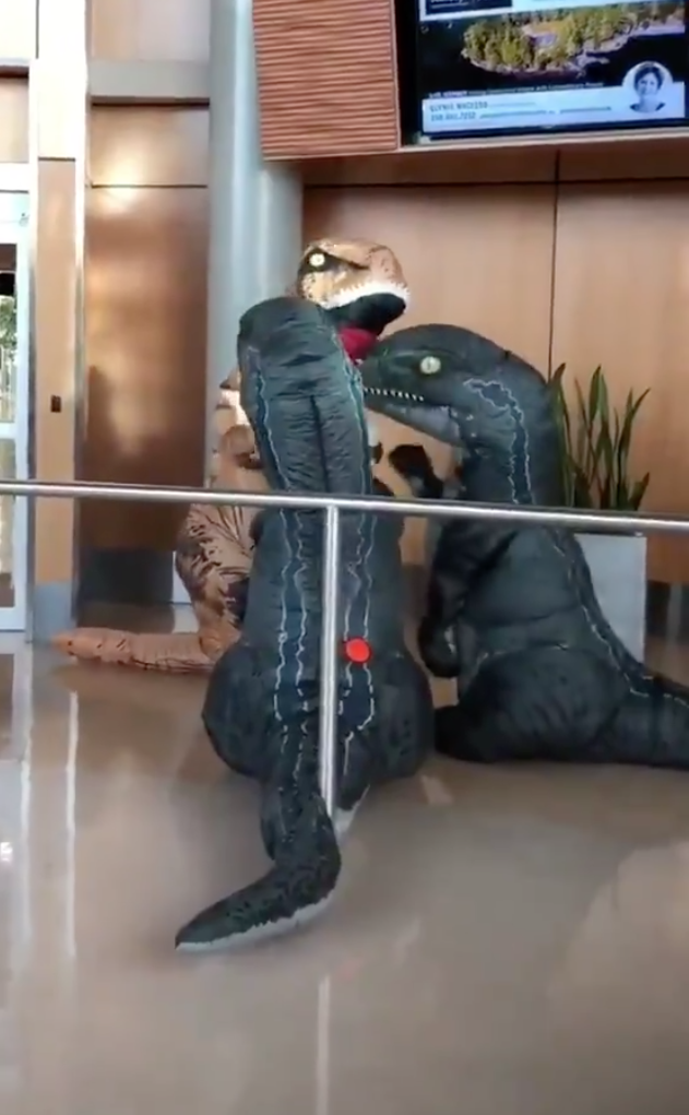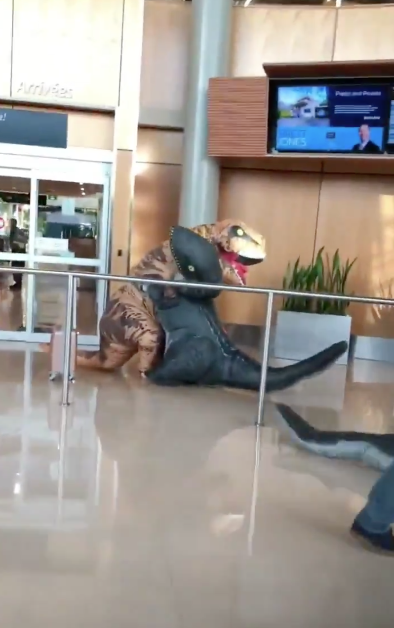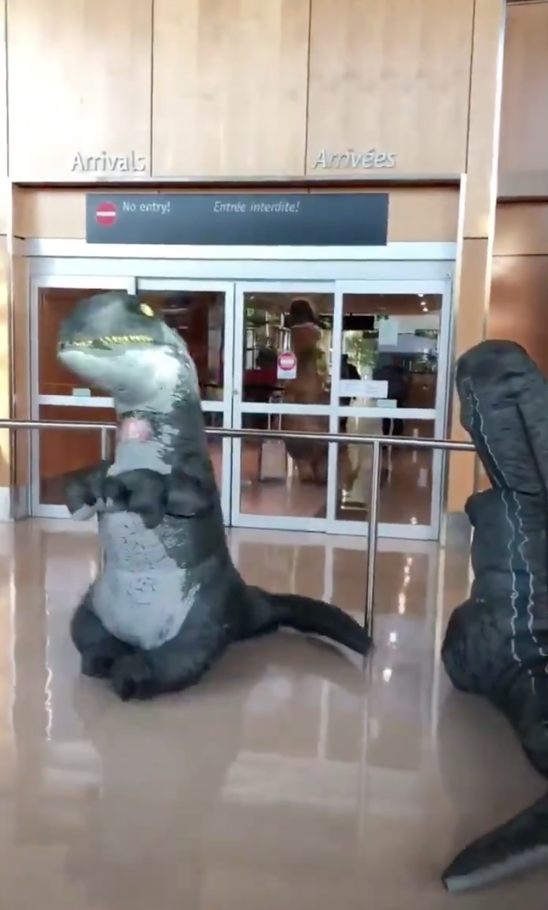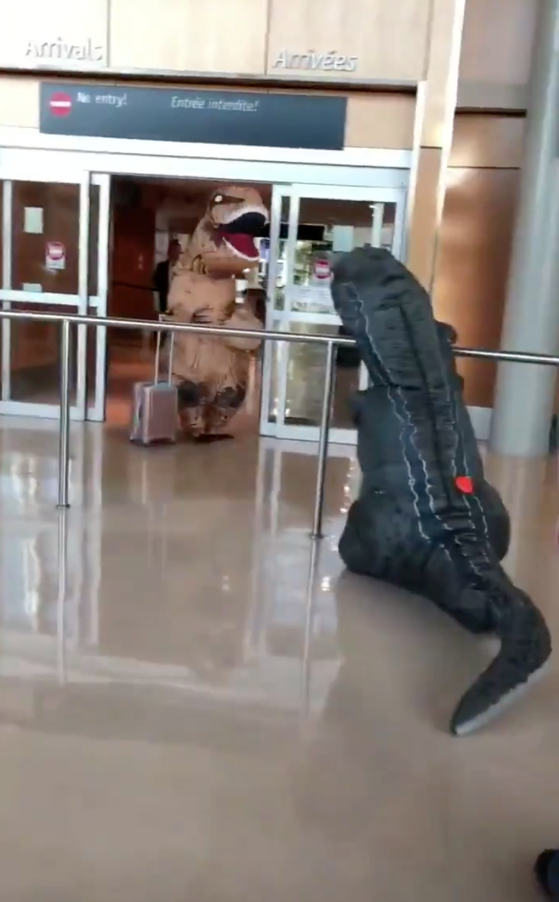 孫子穿「恐龍裝接機」想整阿嬤 竟等到「同類」現身:阿嬤贏了啦