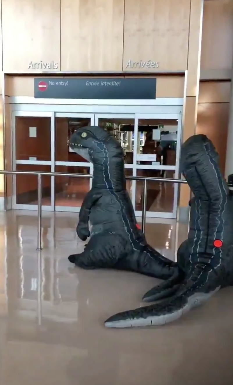調皮的孫子想整阿嬤,沒想到卻漏氣了~國外有兩個小孩和阿嬤的感情非常好,當他們接機時竟然還特別裝扮了一下,穿上恐龍裝想要給阿嬤一個驚喜。沒想到當天阿嬤一現身,孫子馬上就認輸,直接衝過去抱緊處理了~
