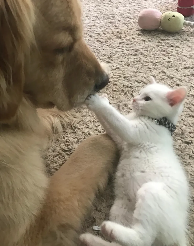 粉嫩肉球好療癒!獲救小白貓遇暖心金哥哥 貓生被改寫「幸福到長大」