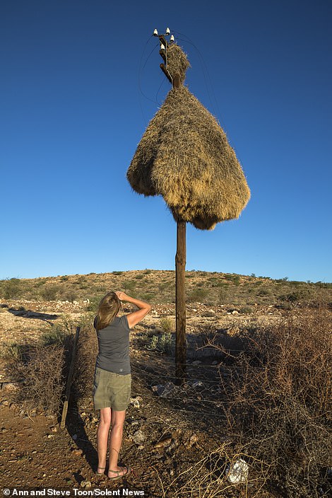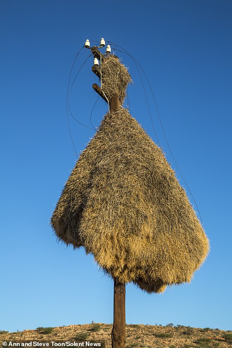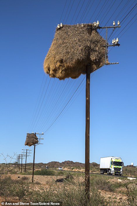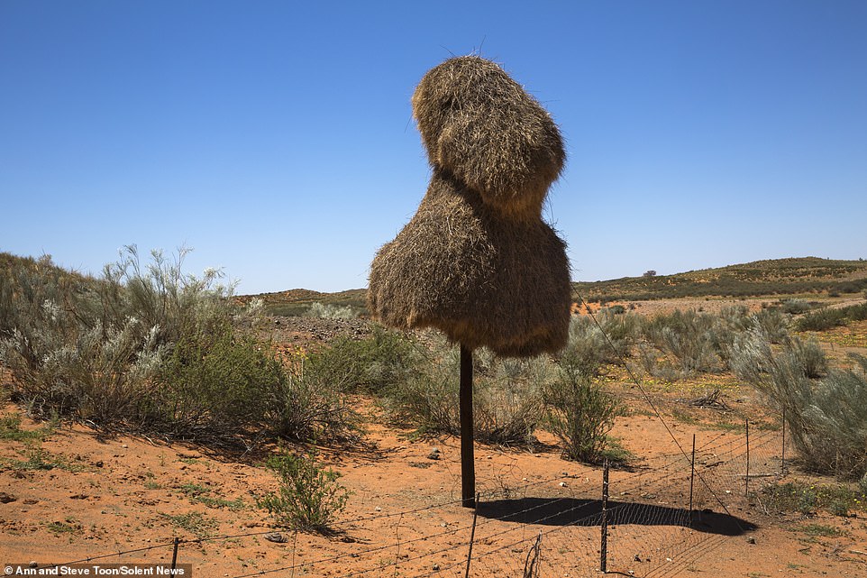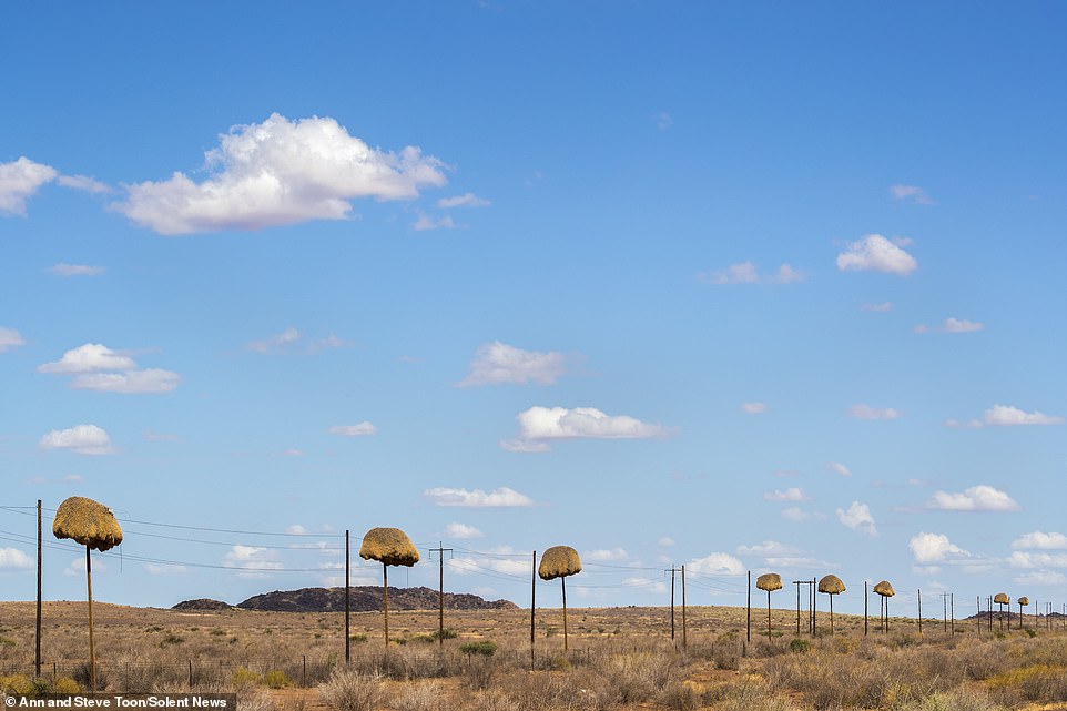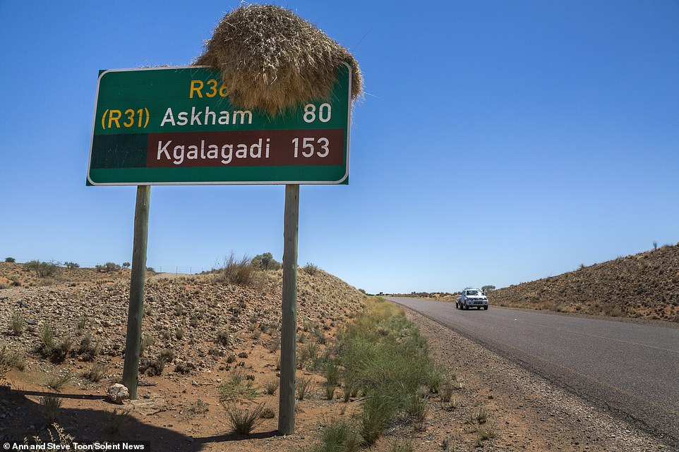 ▼Steve和妻子熱愛動物,常年在世界各地奔走,還曾在叢林中待了6個月。在南非旅行時,他們發現路邊的路牌、電線杆上有很多巨大的草團。這是無聊的孩子們堆上去的惡作劇嗎?