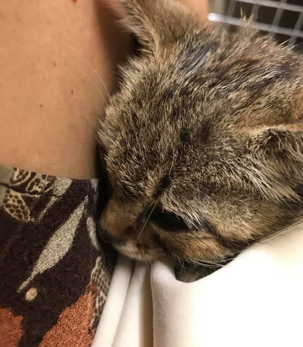 ▼這隻貓咪非常親人,很快擄獲了Carmen的心。Carmen將牠送到獸醫院接受治療,牠全程都很配合。哪怕在洗澡的時候,貓咪也沒有反抗,而是乖巧地任人擺佈。