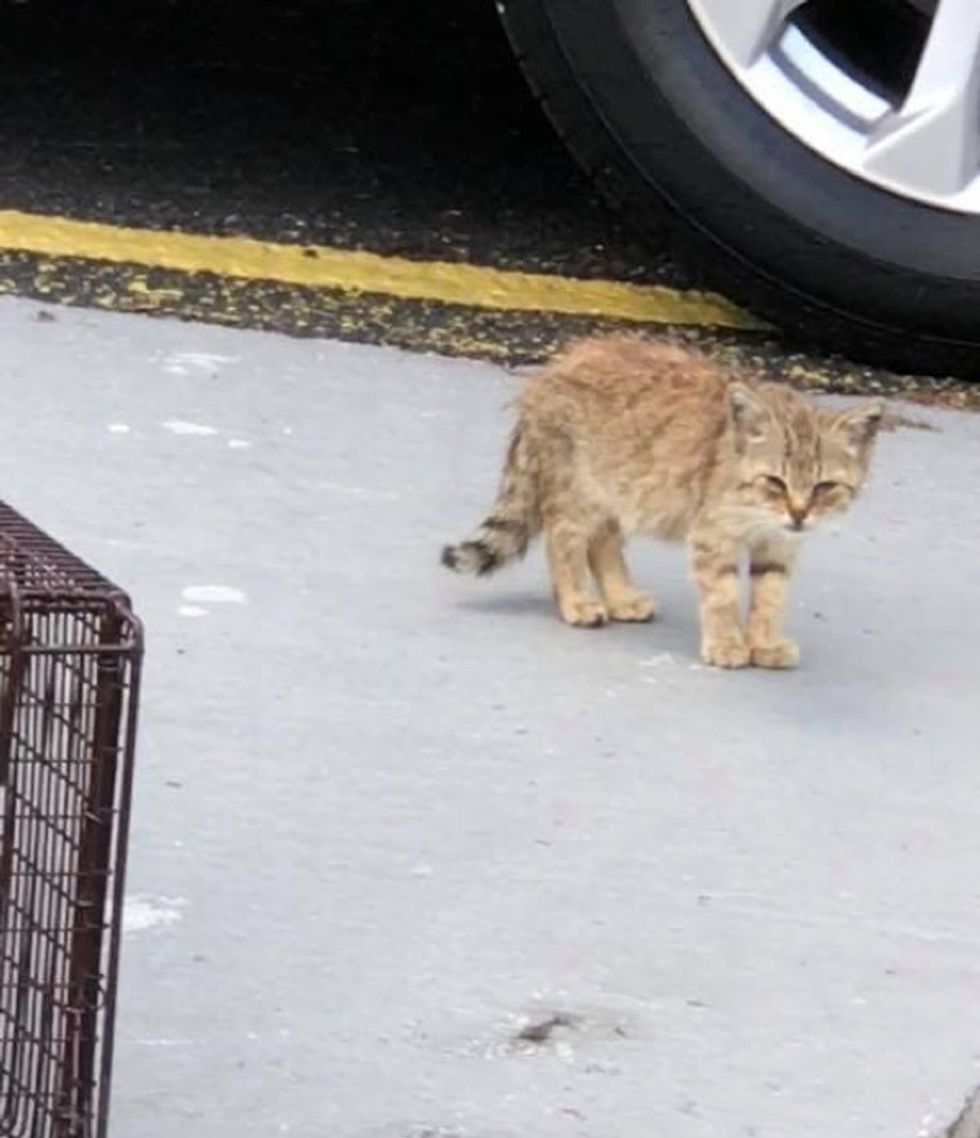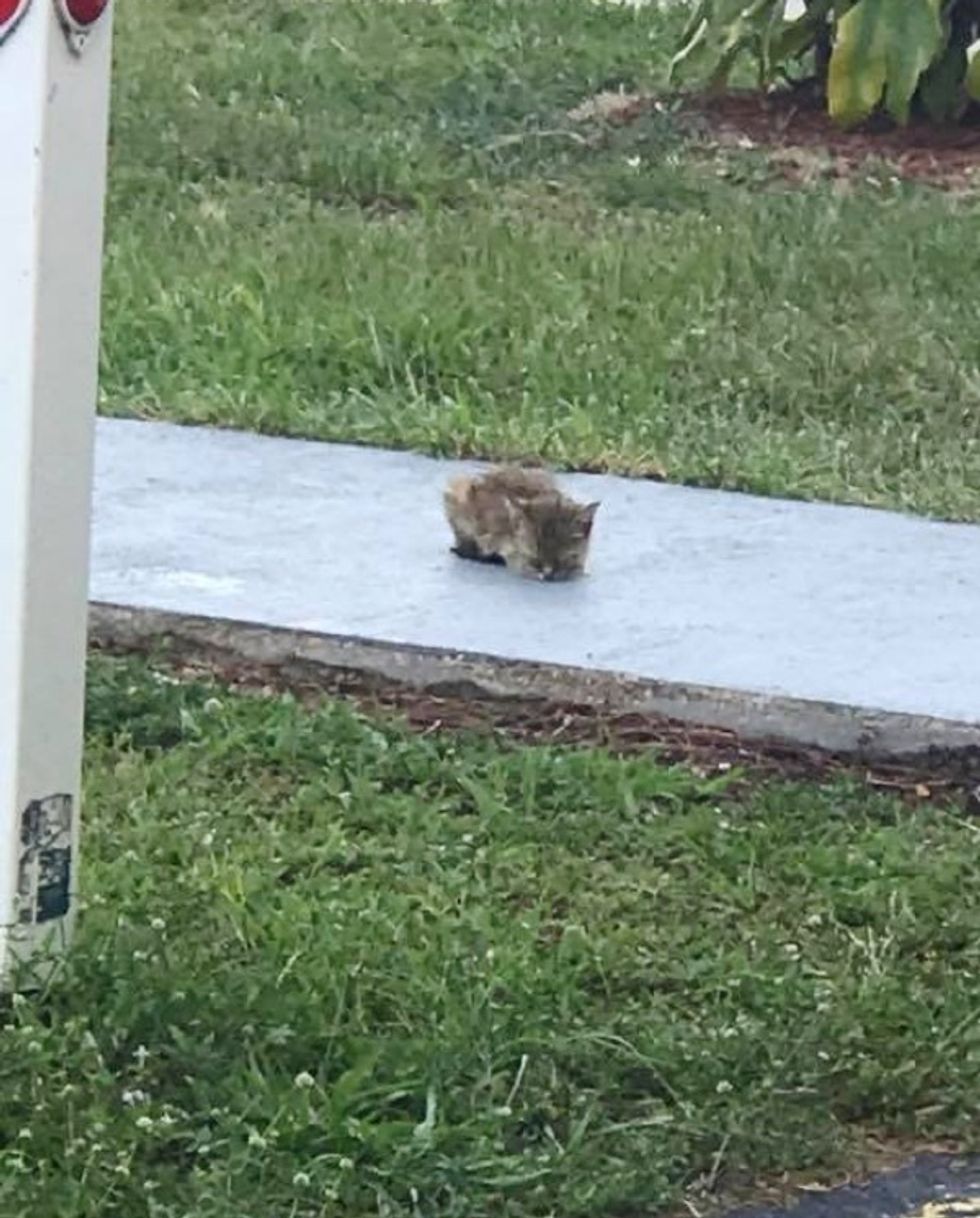 ▼那隻貓咪安靜蹲在小路上,旁邊沒有媽媽陪伴。來來往往的行人都沒有注意牠。Carmen認為,這麼小的浪貓主動跑到人多的地方,顯然是在尋求幫助,她決定伸出援手。