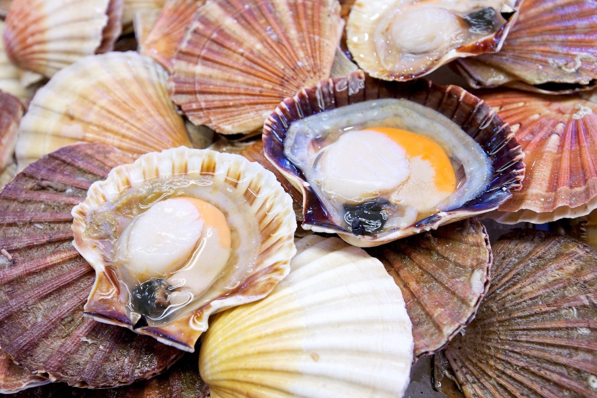 扇貝的身體結構比較特別,他們的中央有閉殼肌,殼的邊緣有100隻眼睛,不僅能適應光線,還能適應黑暗物體。哪怕在視線很不好的海底,扇貝也能移動前進,不會迷失方向~
