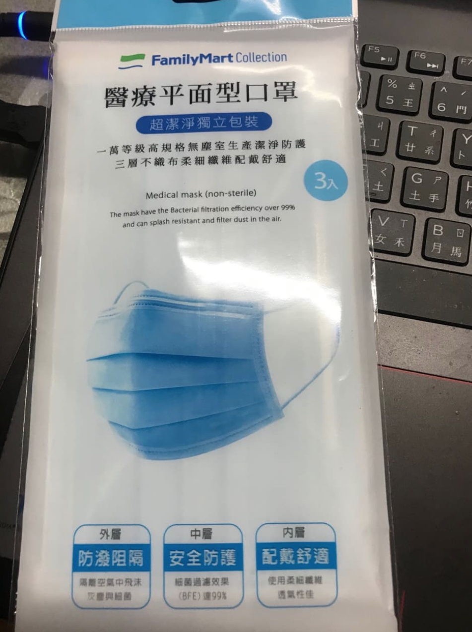 ▼1日起大家已經可以在全台各大交通轉運站、醫院等處的門市購買到1片8元的全家自有品牌口罩,而且也沒有限購3片的規定。根據全家表示,這批口罩非協調分發的口罩,因此可以正常販售,不會有限購的規定。晚間也會有加班物流車持續送到部份門市,希望可以有更多的民眾可以買到口罩。