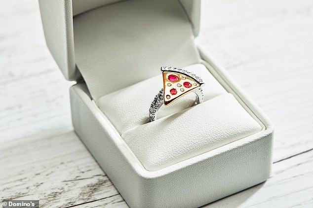 2020年02月05日美味的披薩也能成為真愛的見證。英國達美樂(Domino’s)設計了一枚披薩造型的戒指,準備為愛吃披薩的粉絲提供一個求婚的新選擇。這款披薩戒指是用黃金和白金製作的,上面鑲嵌著鑽石和紅寶石。不知道最後這枚價值9,000美元(約台幣27萬元)的戒指將戴在誰的手上?