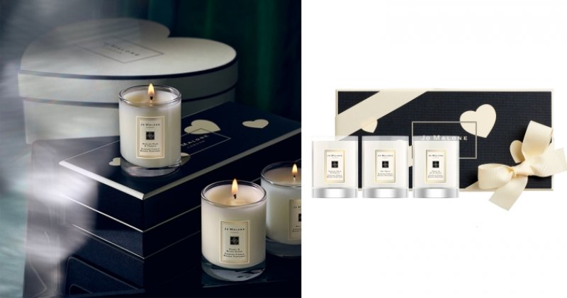 ▼Jo Malone London情人節限定旅行蠟燭禮盒:這款禮盒包裝上印有奶油色愛心圖案,裡面有英國梨與小蒼蘭、紅玫瑰、牡丹與胭紅麂絨3款香氛,販售日期為2月1日到29日。