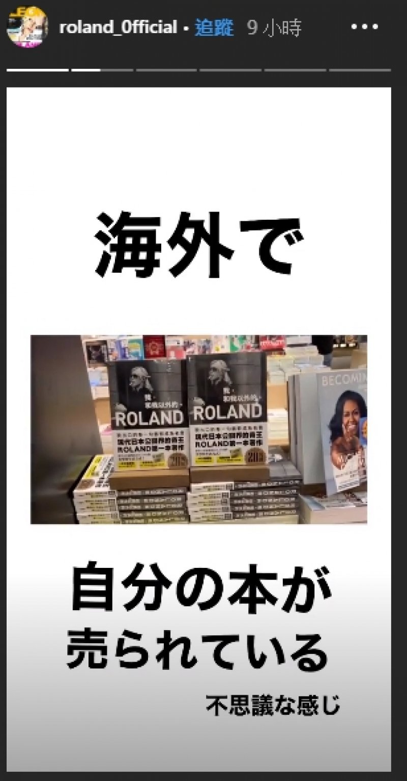 ▼這次羅蘭來台灣是為了宣傳新書《我,和我以外的》。他親自到信義誠品看自己的書在異國上架發售的情況,發現這本書擺在美國前第一夫人蜜雪兒歐巴馬的書旁邊,感覺非常榮幸,也很開心。