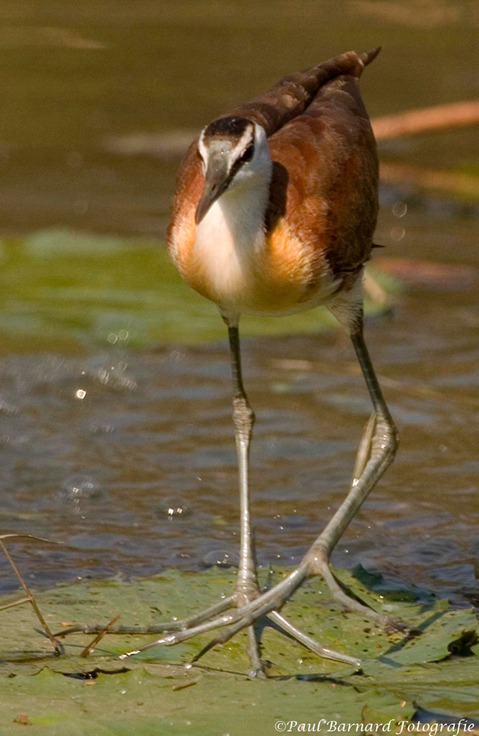 ▼非洲雉鴴長有一雙大長腿,還有巨大的腳趾,能夠在水面的浮游植物上行走。