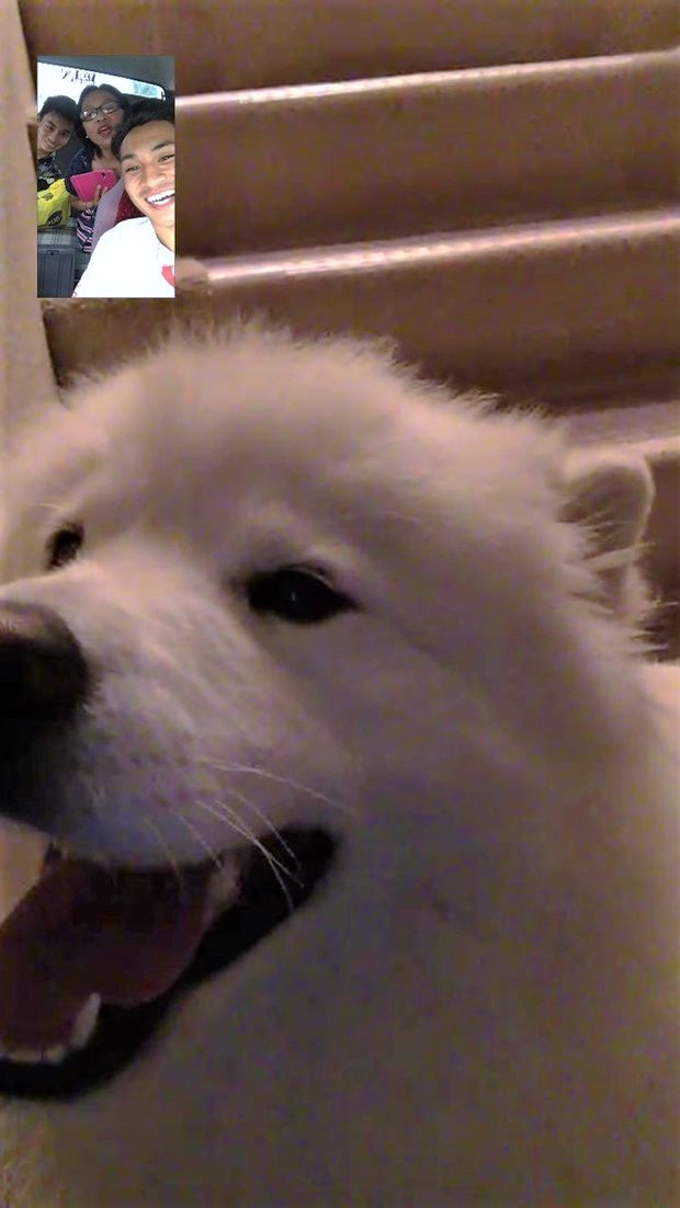 ▼看到主人的臉,狗狗立刻露出燦爛的笑容,看到家人們都出現在螢幕畫面裡,牠笑得更開心了。狗狗瞇著眼睛,咧開嘴角,看起來又萌又Q。