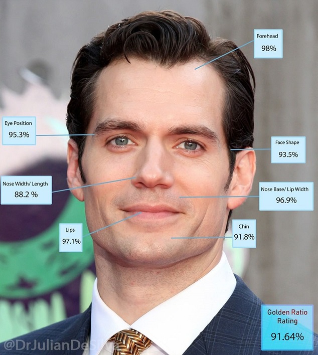 沒想到出演過《超人:鋼鐵英雄》的英國男星亨利卡維爾只排在第二位。其實他的前額比例為98%,嘴唇比例是97.1%,是排行榜上最接近黃金比例的。大家對這個榜單怎麼看呢?