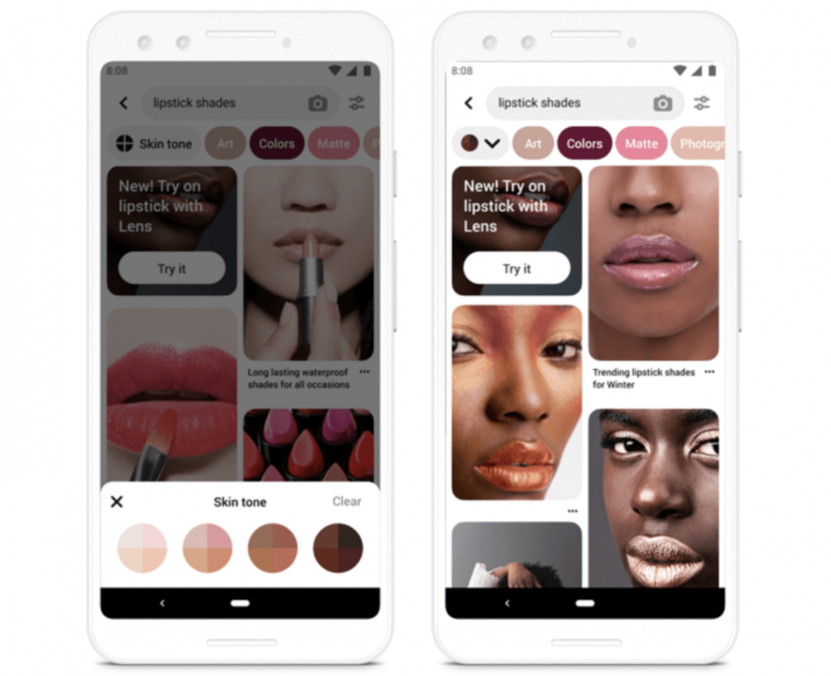 ▼以後不用跑去專櫃試色,在家就能看到唇膏上嘴的效果啦。為了讓效果更逼真,Pinterest的AR虛擬濾鏡功能沒有美肌、修圖功能,讓大家直面真實的自己。