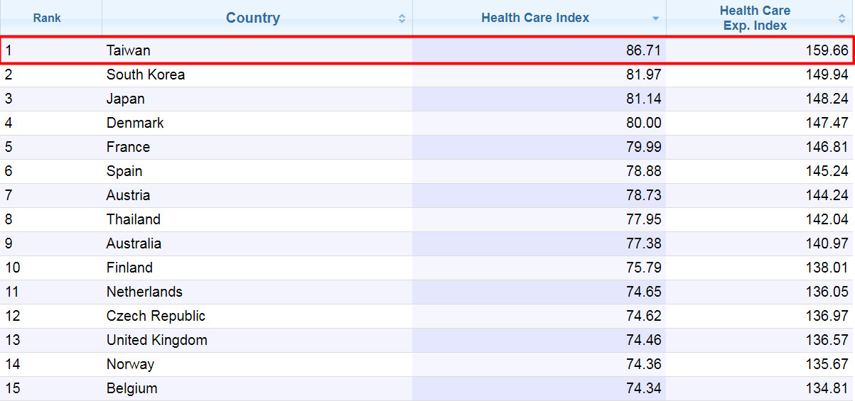 醫療指數超越日本、歐美! 台灣2020醫療保健排名「蟬聯全球第一」