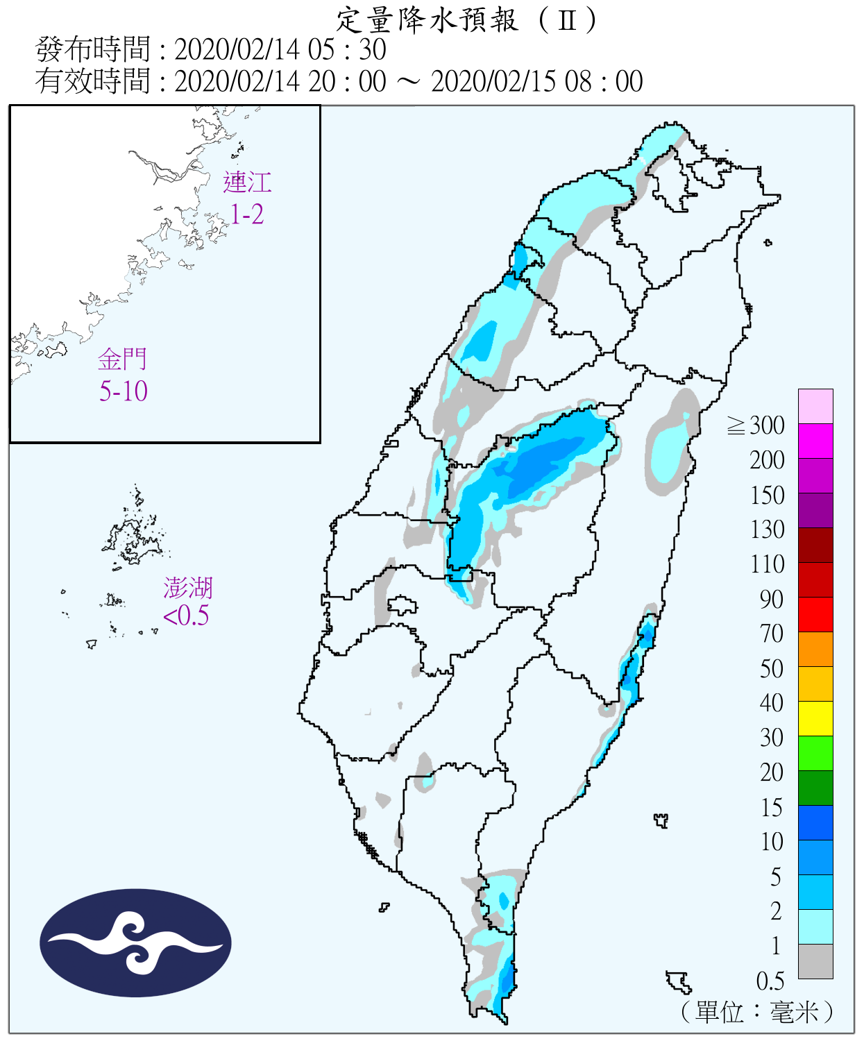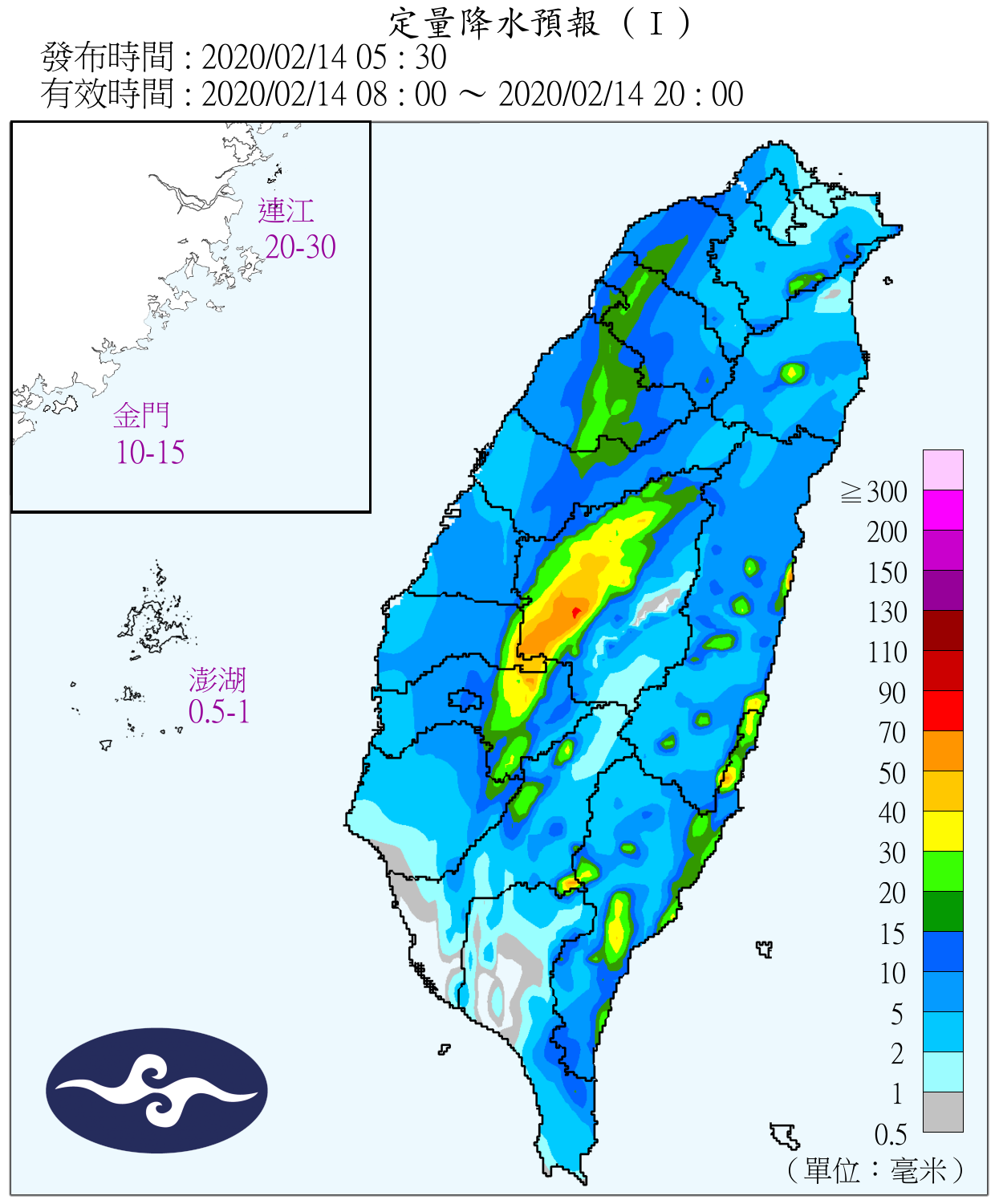 2020年02月14日天氣又冷又濕!隨著2月鋒面接力報到,全台天氣將從後天起變天!氣象局表示,今日對流雲系發展旺盛,易有短時強降雨,台灣局部地區會有大雨發生的機率,呼籲大家出門記得帶傘,並且做好保暖措施。
