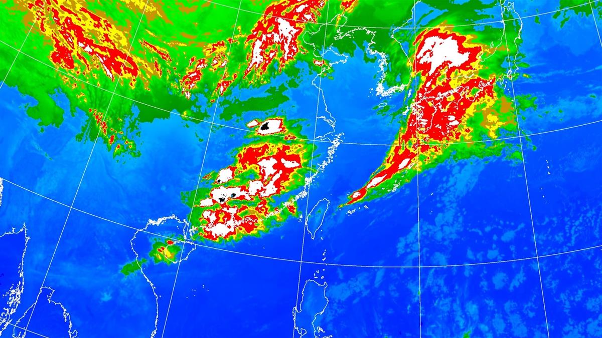 ▼鋒面會在今日中午開始逐漸接近,西半部及東北部天氣將轉為有局部短暫陣雨或雷雨,花東地區也有局部短暫陣雨。