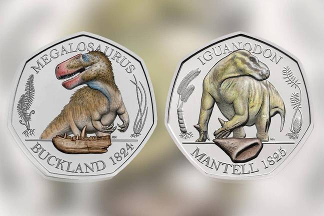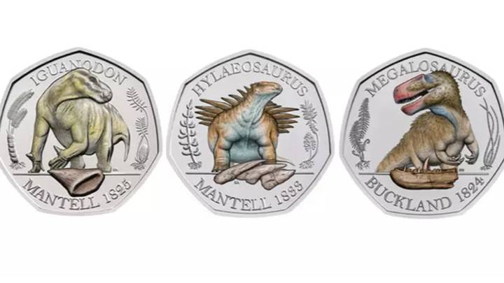 ▼這些 50 便士紀念幣以侏羅紀世界為主題,可以清楚看到完整的每隻古生物。