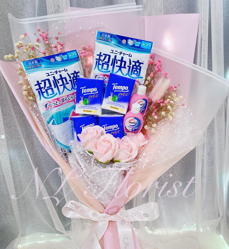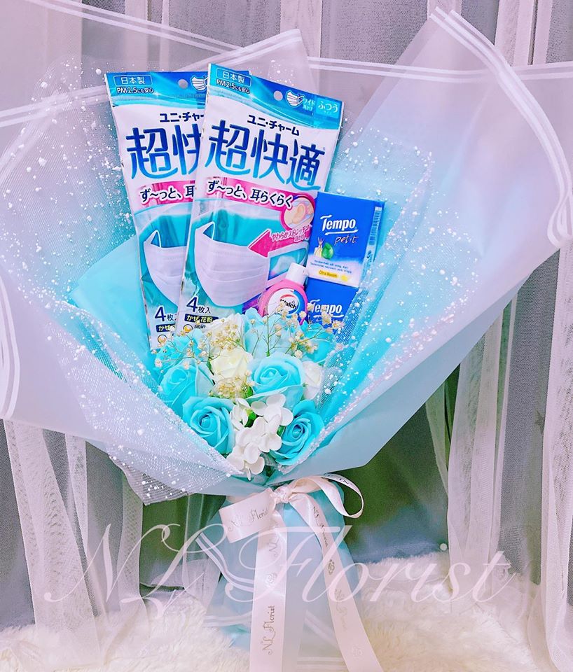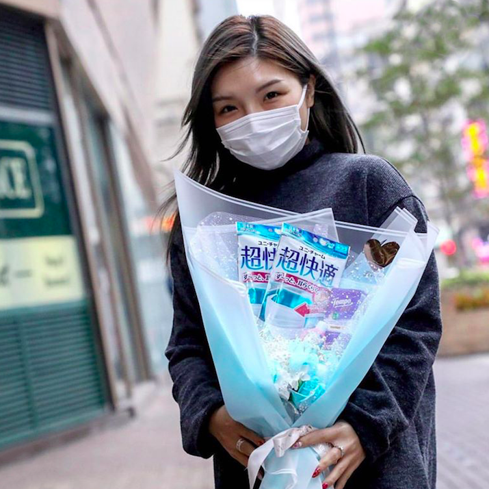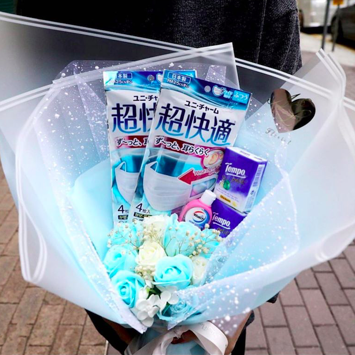 因為武漢肺炎的影響,今年的情人節格外與眾不同。只送普通的鮮花不夠表達心意,網上花店NL Florist有新創意。他們將現在緊俏的日本口罩、乾洗手和紙巾組合起來,連同鮮花一起包裝,製成「口罩花」出售,結果大受歡迎,花店的生意額足足增長了1到2成。