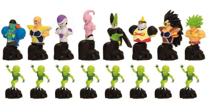 ▼黑棋這一方的國王皇后分別是普烏、賽魯,主教是弗利沙和人造人19號,騎士是拉帝茲、那霸,城堡是布羅利與波杰克,小兵則是栽培人。