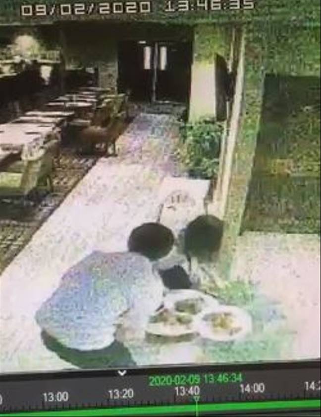 ▼2月9日這天,Jamie工作過程中出現了一個小插曲。當時正是午餐時間,餐廳中非常忙碌,Jamie從廚房出來時兩隻手上都端著餐點,右手有3盤菜,左手有1盤。他走到拐角處準備進入大廳時,不小心在灑有胡椒醬的地板上滑了一下,整個人都倒在了地上。
