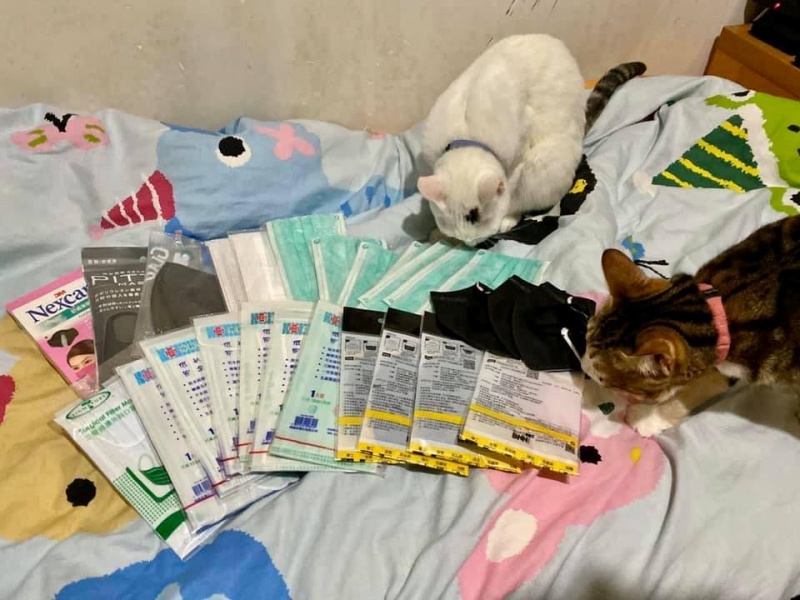 ▼在武漢肺炎期間口罩一度缺貨,Sugar這次可是幫了大忙,開心的主人決定獎勵牠一堆罐罐。