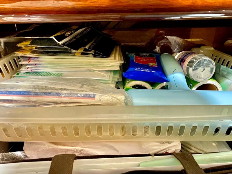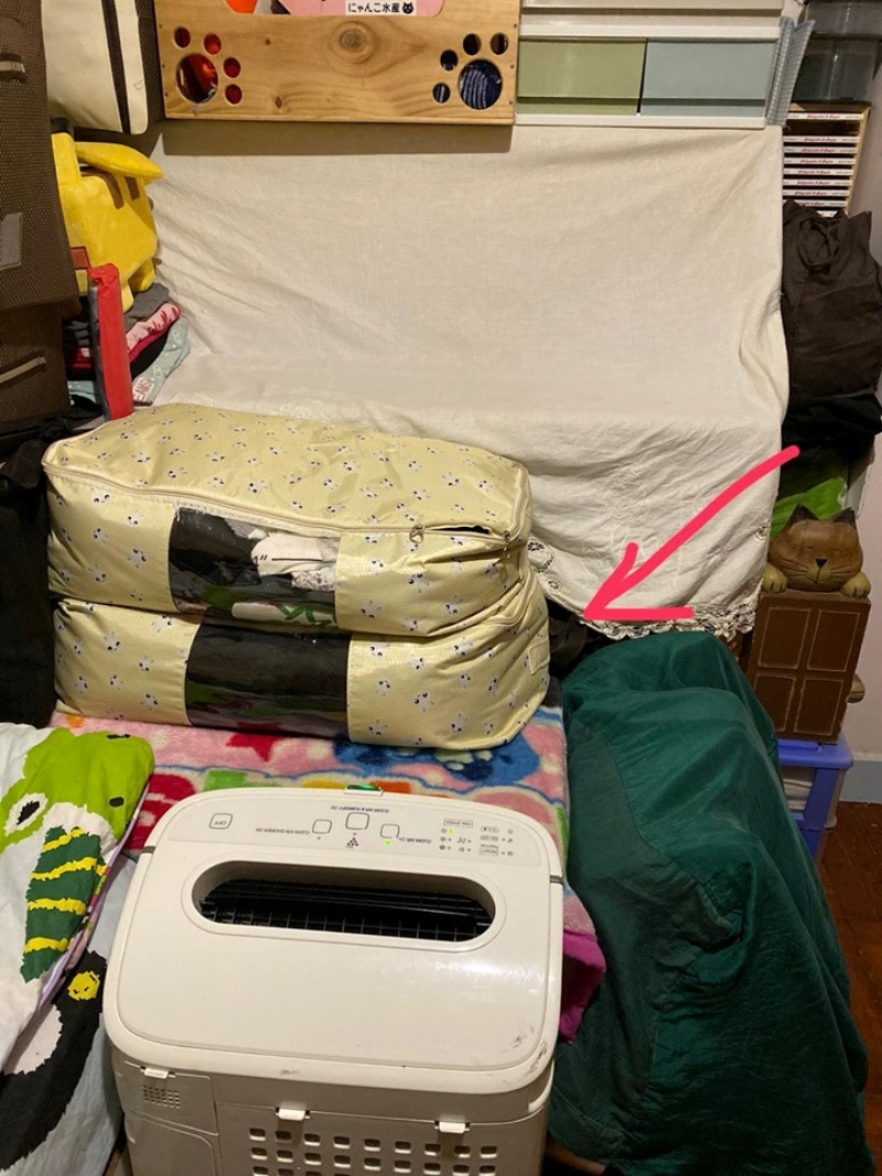 ▼Sugar很喜歡鑽進角落裡玩耍,這一天又鑽進了櫃子裡,還把各種物品弄翻在地。