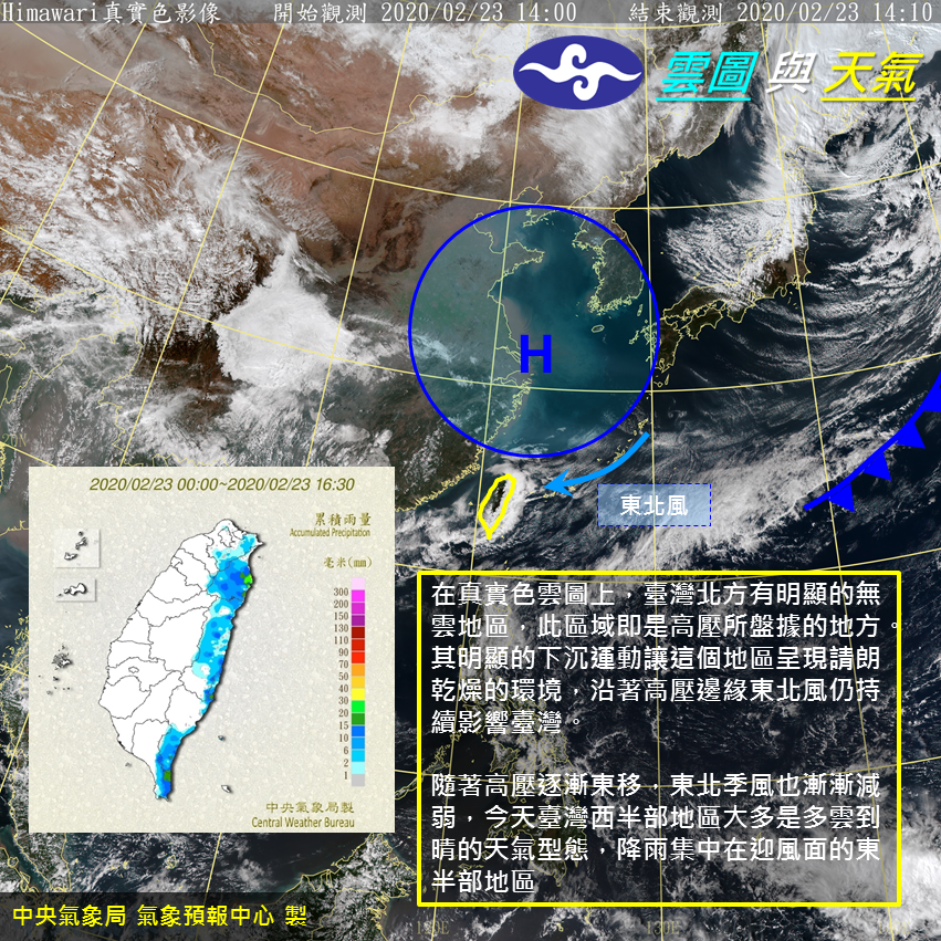 ▼週三、週四(26、27日)因東北季風增強,北部及東半部降雨機率增高,北台灣受降雨影響,高溫下降至22至24度,其他地區多雲到晴;週五至下週日(28日至3月1日)228連假期間,東北季風減弱,僅有東半部地區及北部山區有局部短暫雨,其他地區多雲到晴。