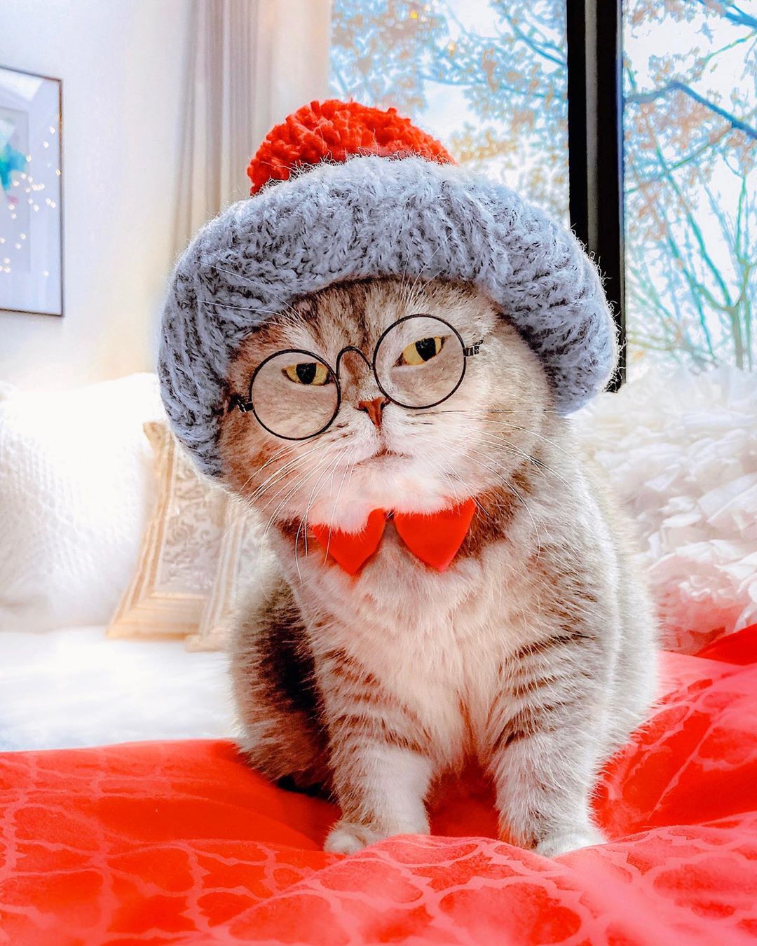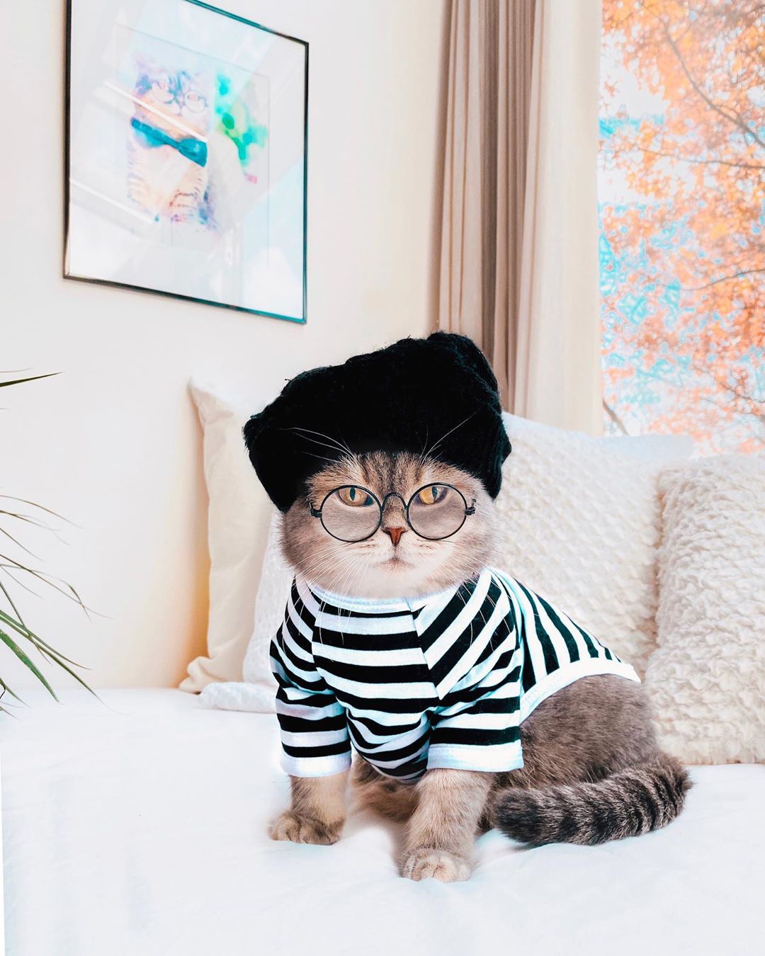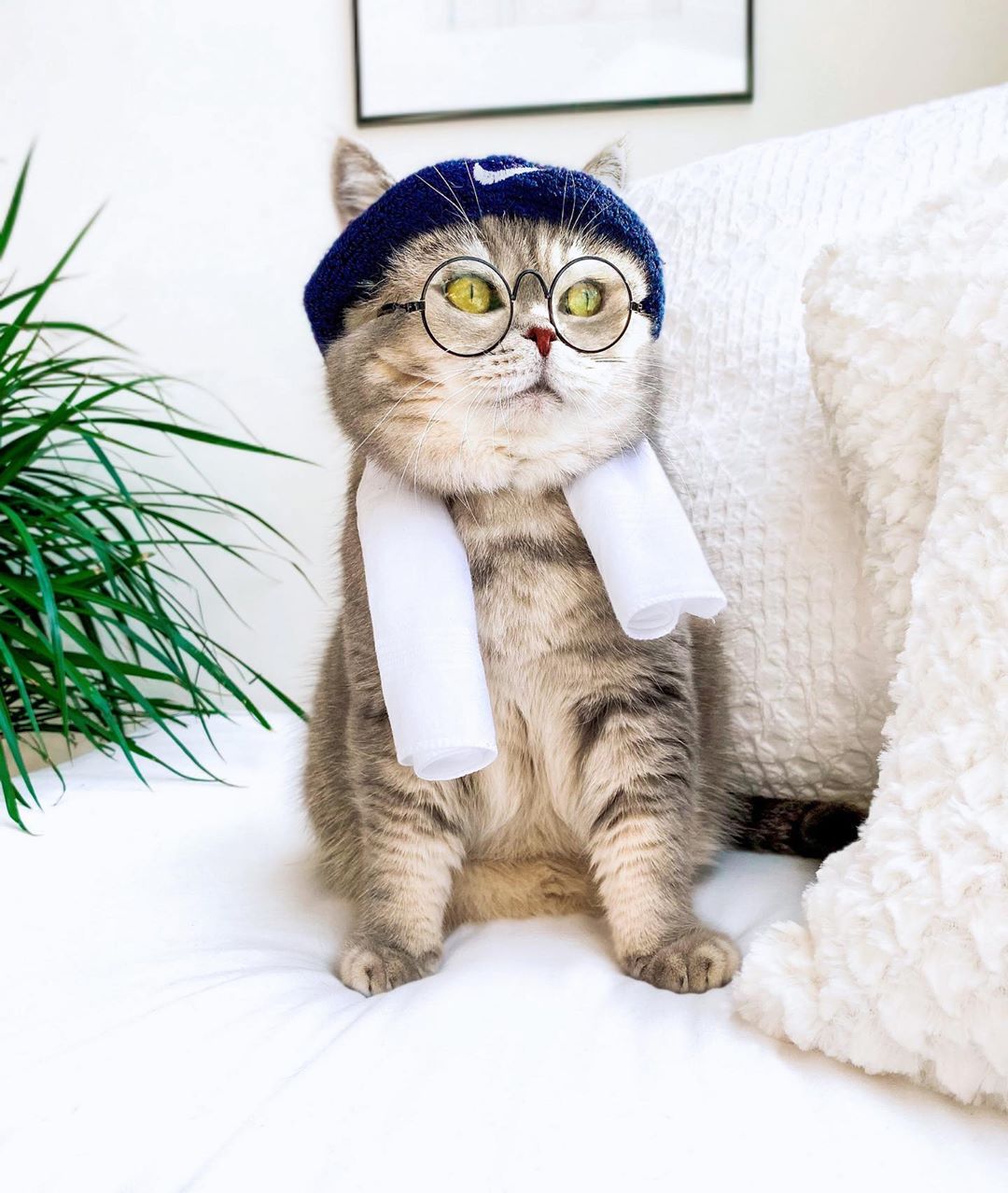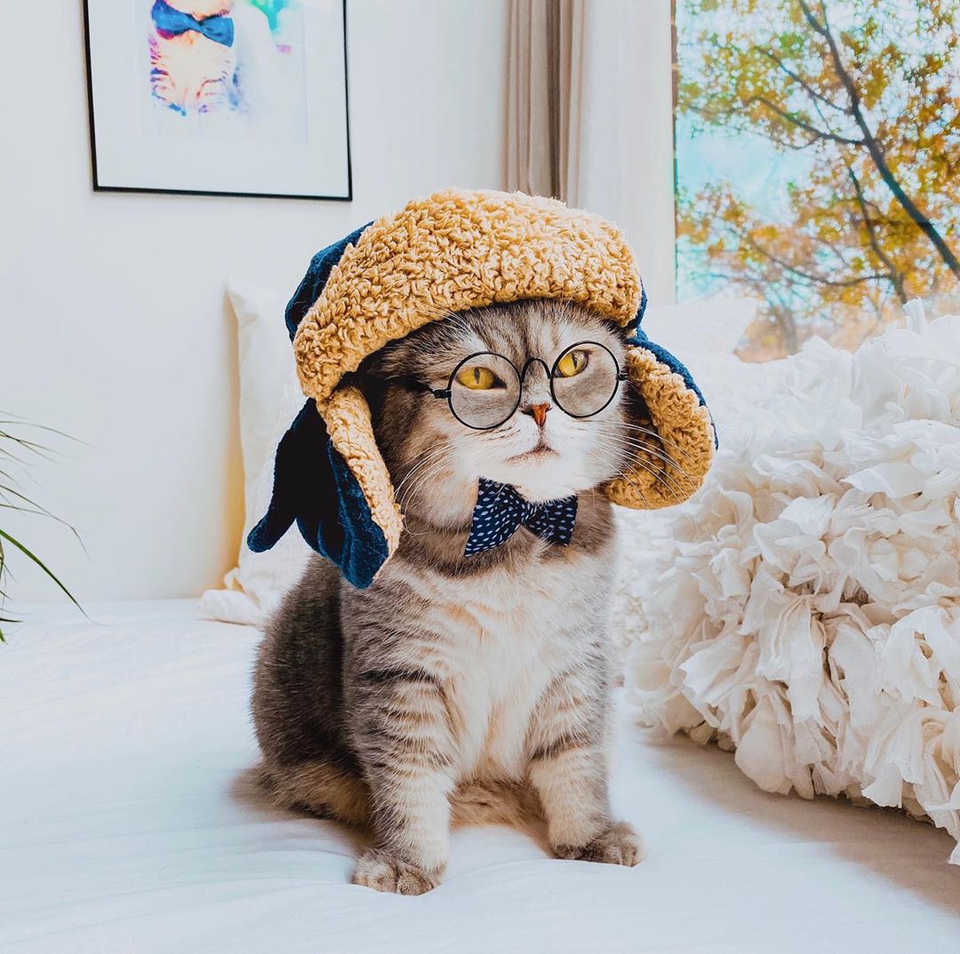 是斯文的貓!氣質貓咪「帽子+眼鏡」好時尚 優雅風範讓人好想學穿搭♡