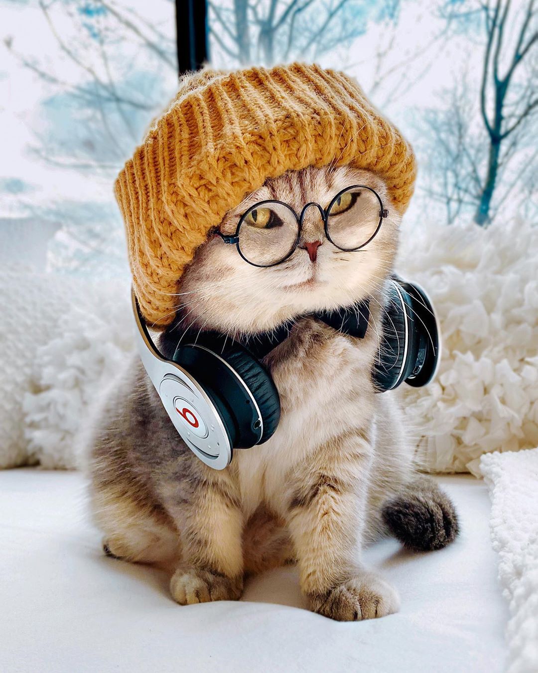 ▼主人很喜歡裝扮Benson,最愛給牠買各種各樣的帽子,再搭配眼鏡、耳機等配件,Benson瞬間化身時尚潮貓。