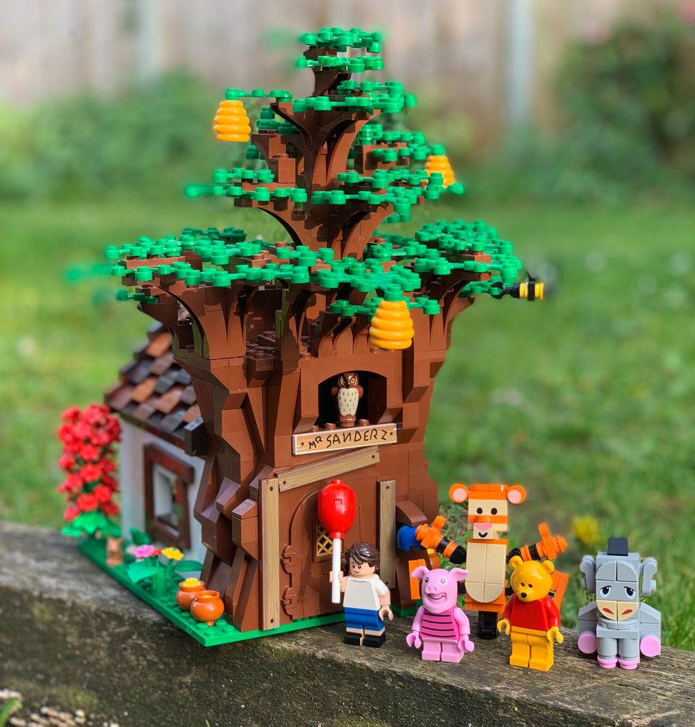 ▼這一套作品的主體是小熊維尼的樹屋,樹上靈星點綴著蜂窩,小屋門上的名牌「MR SANDERS」神還原。同時還附有小熊維尼與他的好朋友們:跳跳虎、瑞比、小豬、屹耳和貓頭鷹。