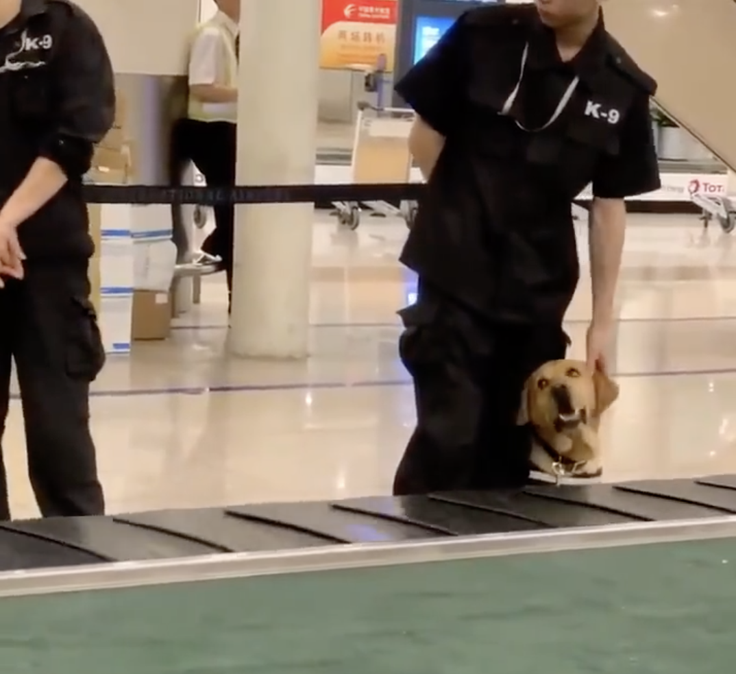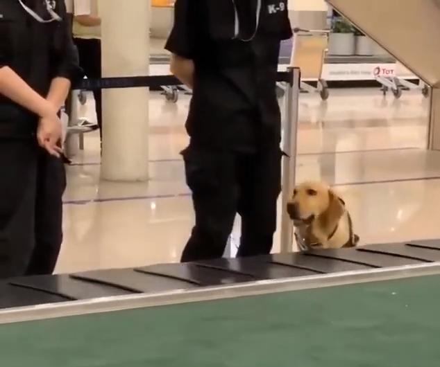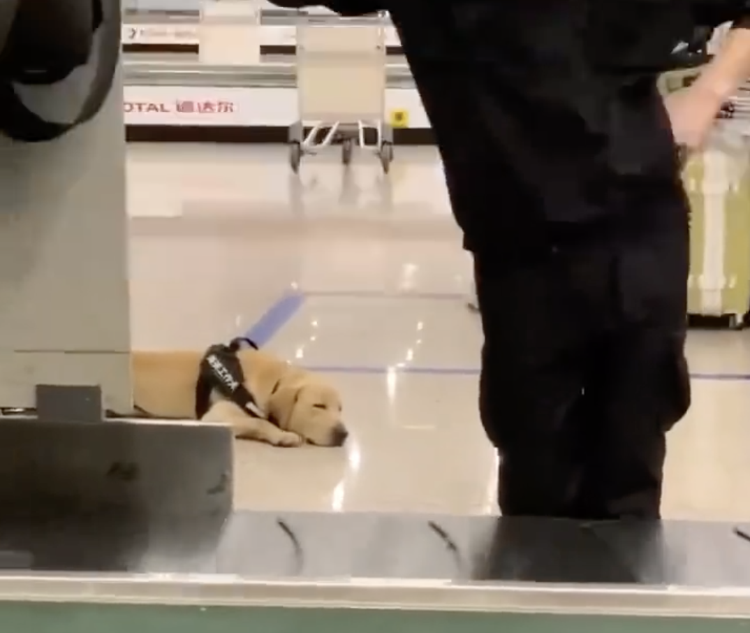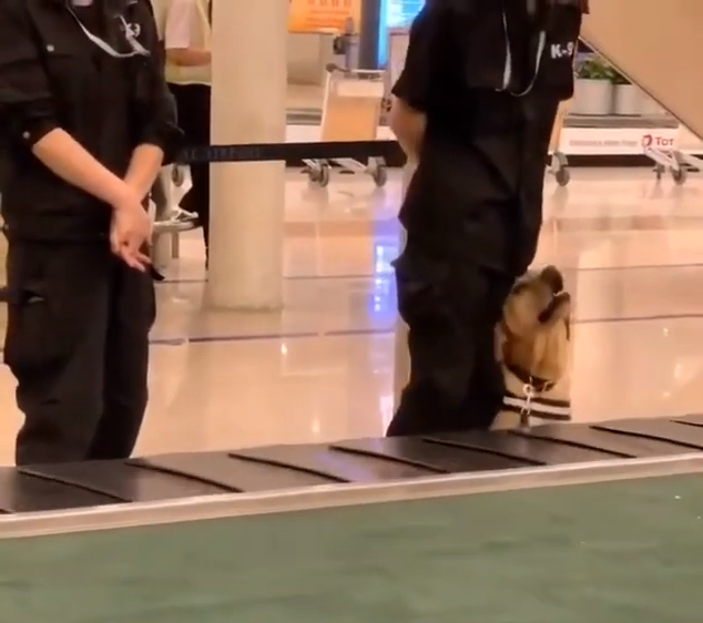 ▼網路上最近引發熱議的這支影片,是有一隻海關工作犬在執勤期間,看起來明顯有點不安、緊張,好像是剛上班沒多久的菜鳥,正在適應工作。