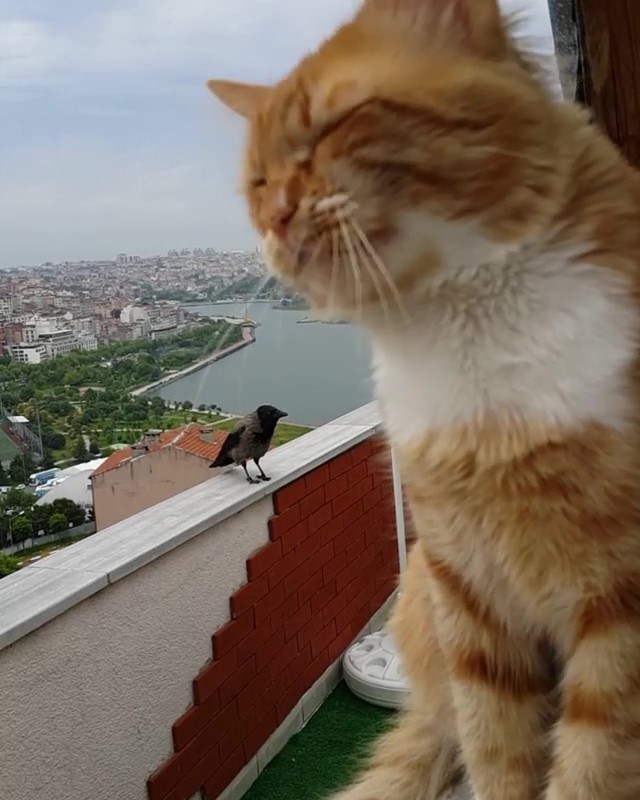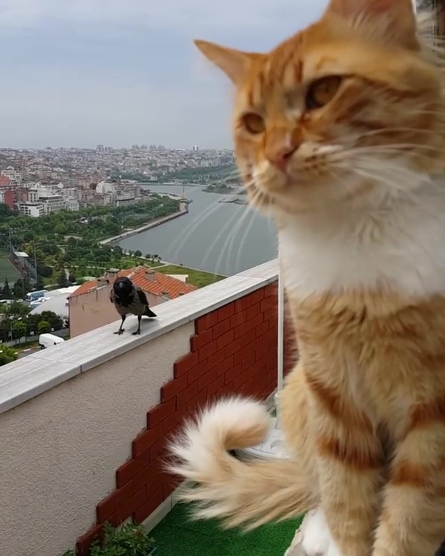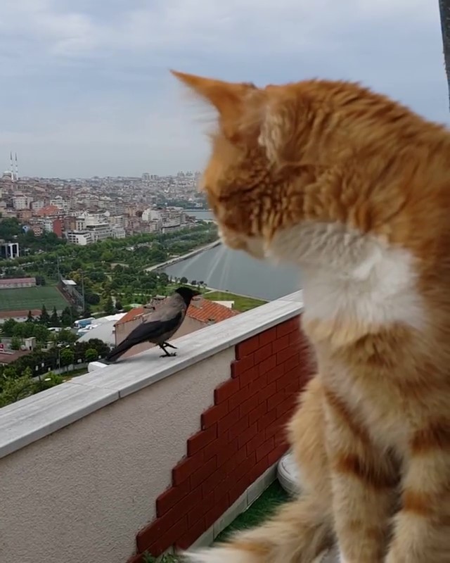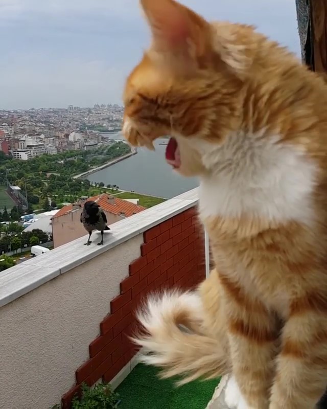 2020年03月06日連動物都會說第二外語了?土耳其一位飼主養了一隻叫Bal的胖橘貓。那天Bal和一隻野生烏鴉吵了起來。雖然牠們一隻「喵喵」叫,另一隻「啊啊」叫,卻吵得非常投入,你一句我一句,好像真的能聽懂對方在說什麼。那有趣的畫面讓網友忍不住笑翻。