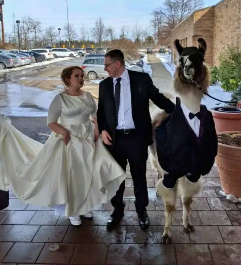 哥遵守5年前約定「帶草泥馬證婚」 妹一看嘴角狂抽:新娘風頭都被搶了啦!