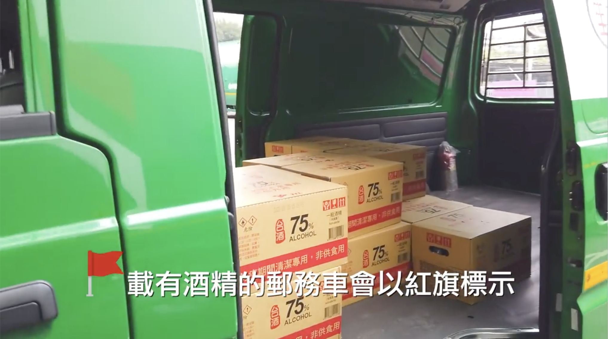 重任在身!郵務車「掛小紅旗」是正運送防疫酒精 官方呼籲:麻煩優先禮讓