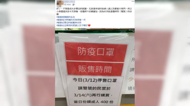 ▼後來這位藥師又發文表示,他不想造成太多單位的困擾,尤其是辛苦的後線人員與郵差,所以決定還是3月12日停售口罩,但3月14日會增加份額。