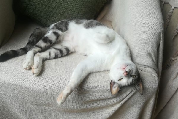 2020年03月13日毛孩擁有療癒人心的力量。國外網友Tamsyn Bouttell在臉書社團po文說,她有一天因為支氣管問題請假在家休息。她吃藥後躺在懶骨頭上昏睡過去,恍惚間感覺面前有一張毛茸茸的臉,結果一睜眼就看到一隻可愛的白底虎斑貓正躺在旁邊,深情凝視著她,但她根本沒有養貓啊!