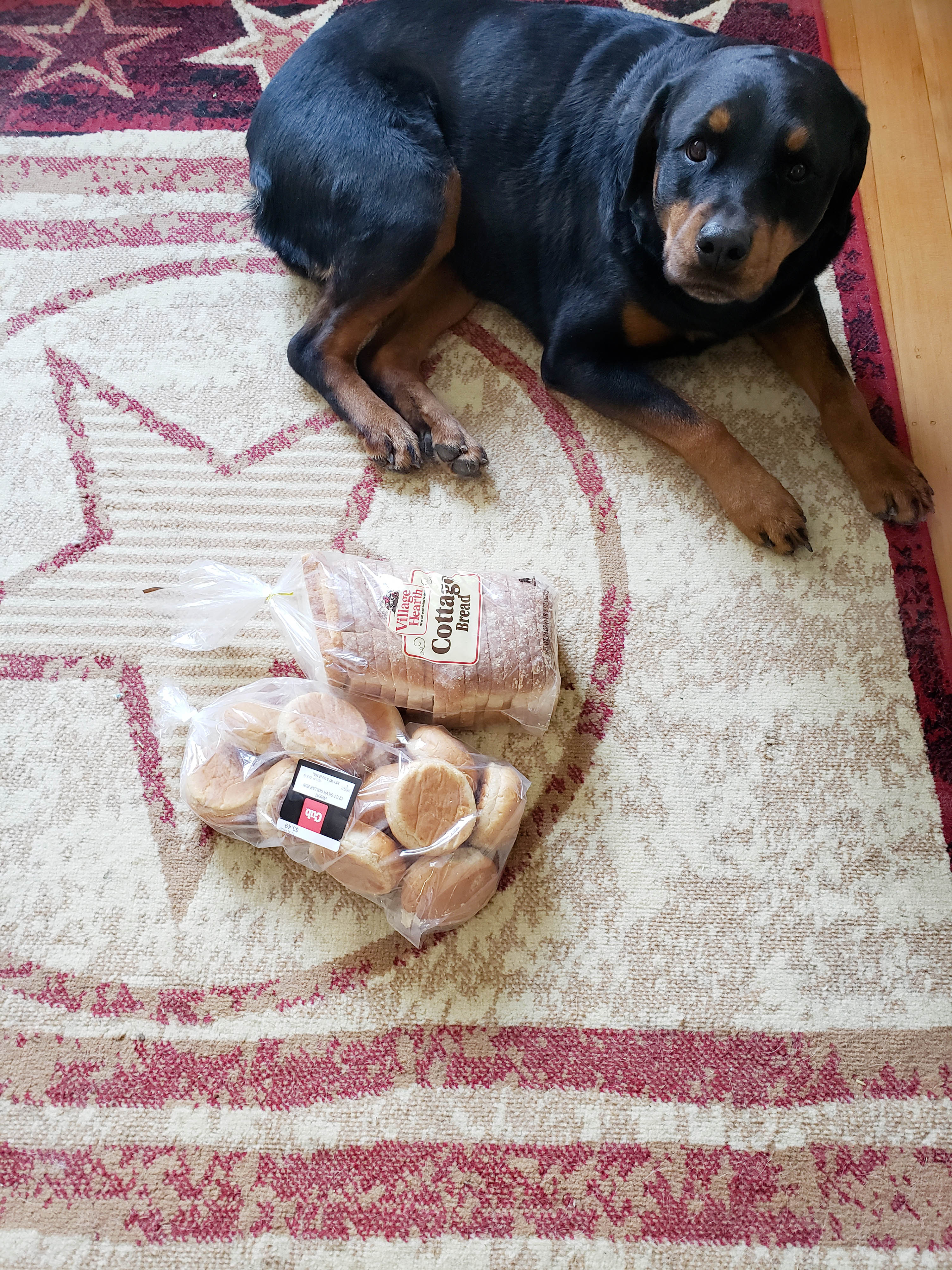 2020年03月14日很多狗狗都有獨特的習慣。國外女子Katrina Frank養了一隻6歲的羅威納犬,叫Jakey。Jakey非常忠誠,自認為是家中的守護神。每次主人不在家,Jakey都會把家中的麵包找出來,然後守護在旁邊。牠要保護好人類的寶貝~
