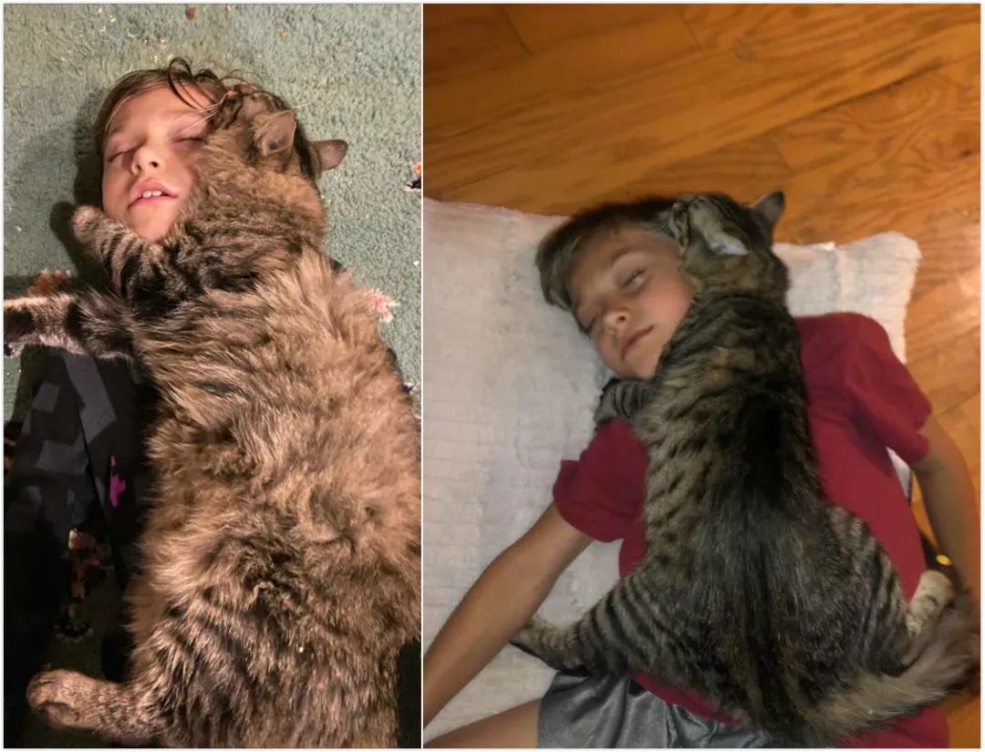 ▼除了日常黏在一起,就連睡覺的時候他們都不分開。每次Noah睡覺,Meowser都會跑過去,化身「貓貓被」蓋在他的身上,還會不停蹭他的臉頰。