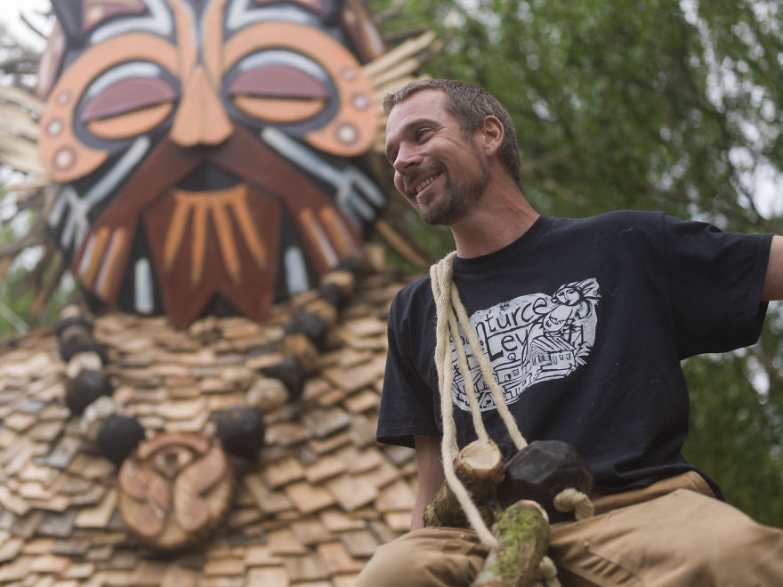 ▼Thomas從小就對童話故事、民間傳說很感興趣。雖然他無法進入夢想中的神話世界,但長大後的他成為了一個造夢人。他用回收來的材料在叢林中建造巨人雕塑,宣傳環保的同時,鼓勵人們前來探險。